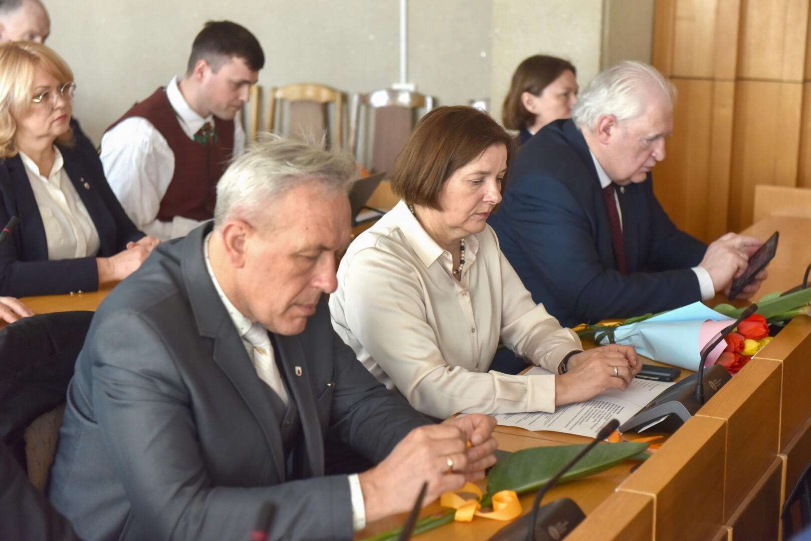 Linkėjimų tirados naujajai valdžiai liejosi iš miesto kultūros, švietimo bendruomenių, Lietuvai pagražinti draugijos, Moterų lygos Panevėžio skyriaus, Panevėžio verslo atstovų.