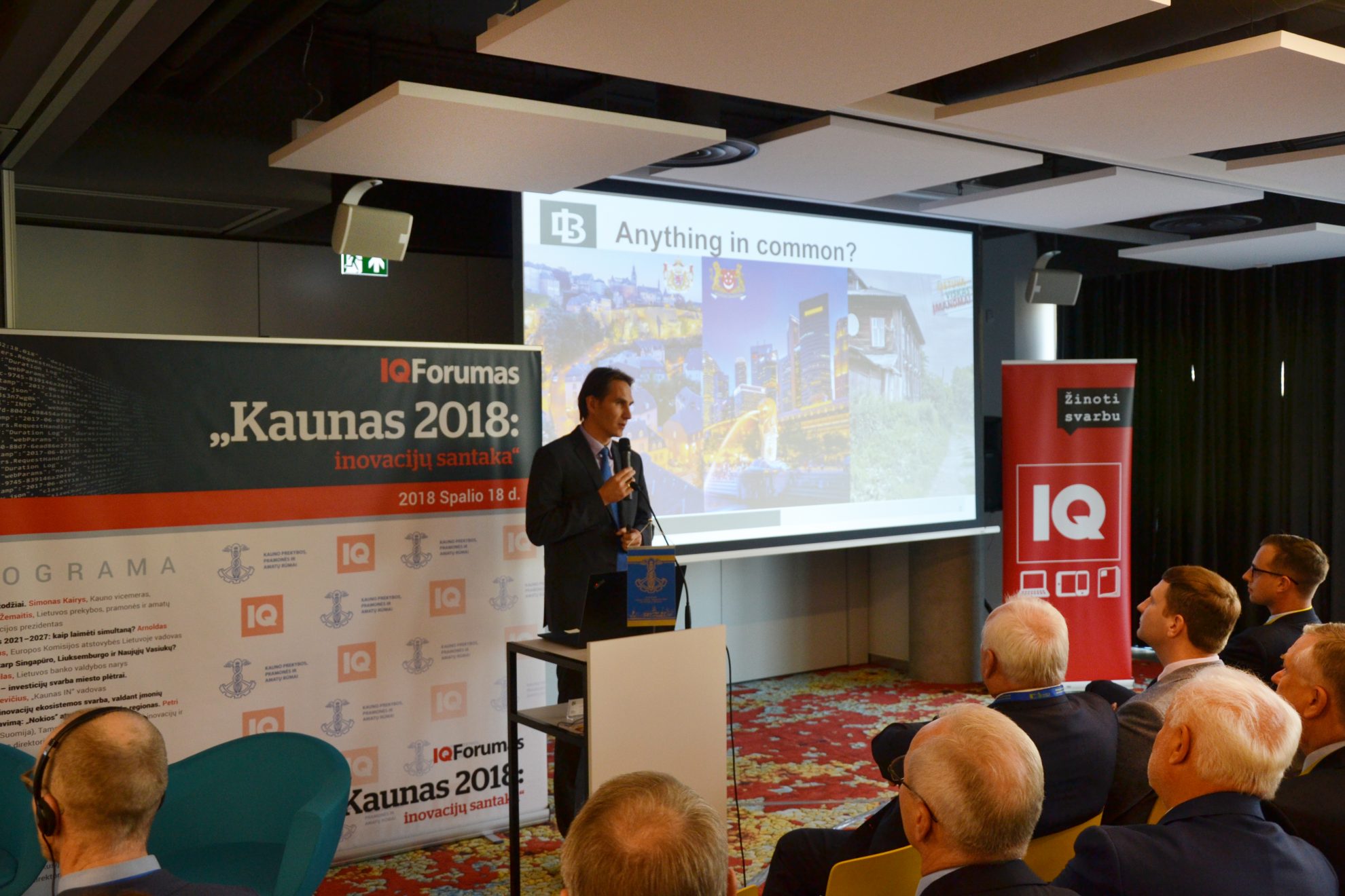 Spalio 18 d. verslo centre „Kauno dokas“ vyko žurnalo IQ ir Kauno prekybos, pramonės ir amatų rūmų organizuotas forumas „Kaunas 2018 – inovacijų santaka“. Renginyje Europos Komisijos (EK) atstovybės Lietuvoje, Lietuvos banko, vietos verslo, savivaldybės, švietimo atstovai bei ekspertai iš užsienio pristatė ekonomines regiono tendencijas, miesto plėtros gaires ir galimybes, sėkmingus inovacijų versle pavyzdžius.