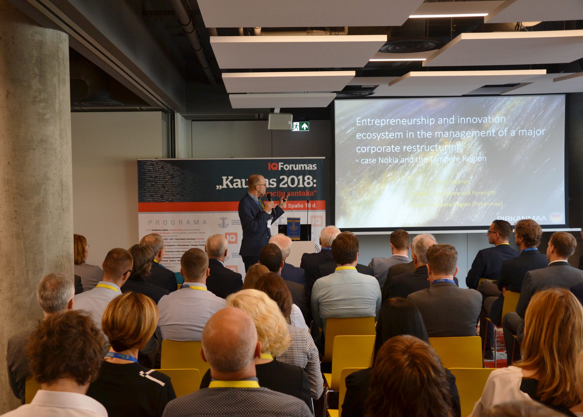 Iš Suomijos į konferenciją atskridęs Tamperės regiono inovacijų ir įžvalgų tarybos direktorius Petri Räsänenas pasakojo apie tai, kaip šis regionas išgyveno telekomunikacijų įmonės „Nokia“ uždarymą.