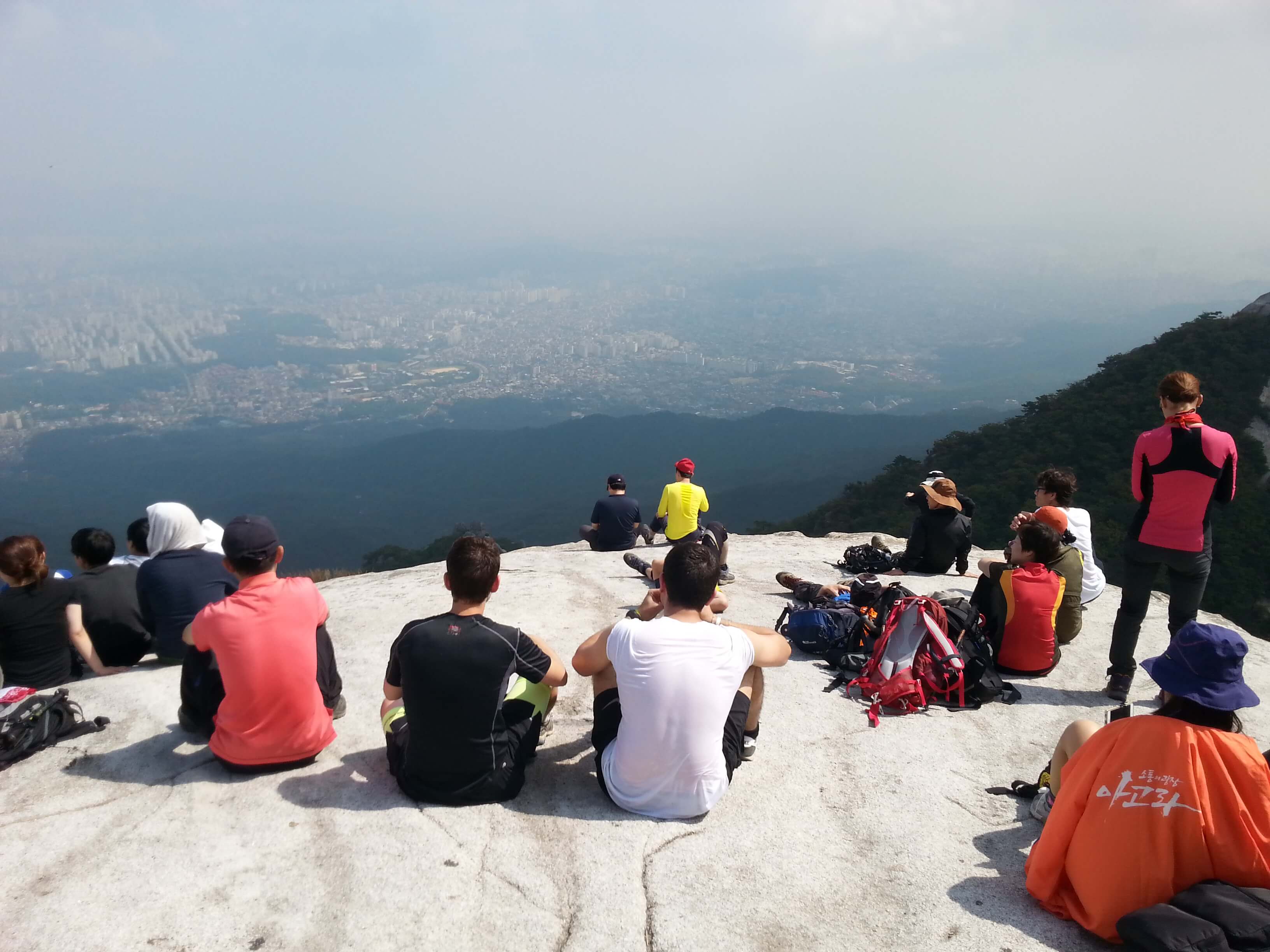 Dar viena poilsio – tik gerokai aktyvesnio – oazė korėjiečiams yra kalnai. Kiekvieną savaitę, geriausia sekmadienio rytais, kolektyviai ir po vieną, liedami sūrų prakaitą, tvirtai ir užtikrintai vietiniai šturmuoja įkalnes. Net jei kopikui greitai sukaks aštuoniasdešimt, net jei tądien sninga, lyja ar baisiai karšta. Viskas, ko reikia, tai butelio korėjietiškos ryžių degtinės, raugintų kopūstų su aitriosiomis paprikomis ir radijo kuprinėje. Nesvarbu, kad į kalnus eini ieškoti ramybės – visą kasdienybės triukšmą vis tiek pasiimi kartu. Sėdęs į metro ar autobusą pakeliui sutiksi ne vieną studentą, šeimą su vaikais, pensininką ar klasės draugą, savaitgalį keliaujančius į kalnus.