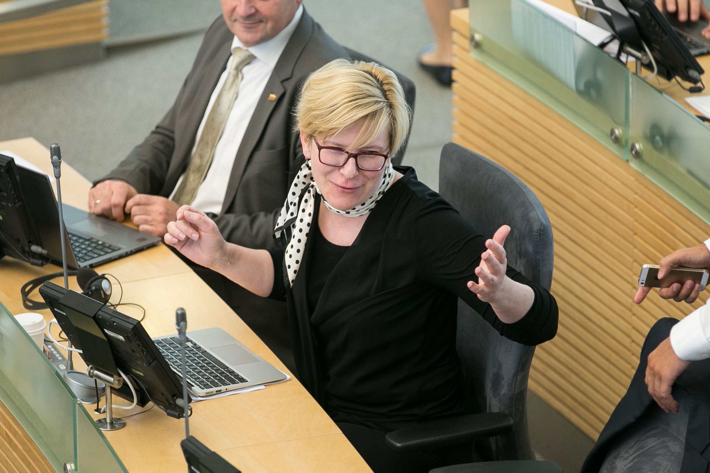 A.Širinskienė atmeta Seimo mažumos priekaištus, kad taip iš jos atimami dialogo su dauguma instrumentai. „Bet iš esmės jie tą instrumentą ne dialogui naudoja, o blokavimui“,– tikina ji.