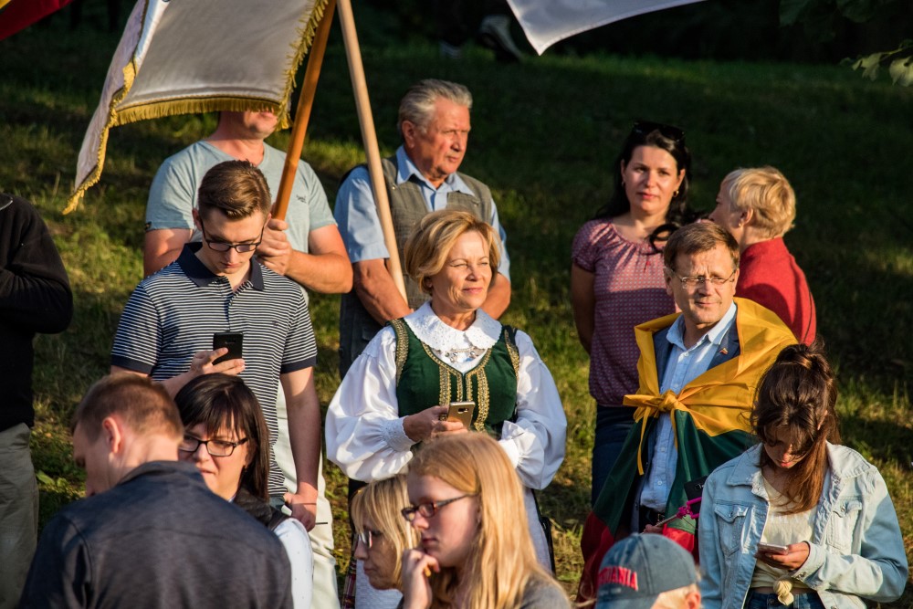 Šventėje sutikti sutuoktiniai iš Panevėžio Vaida ir Nemunas Rašinskai taip pat nekantriai laukė himno giedojimo. Tačiau pora vežimėliu atsistūmė ir nė metukų neturinčią anūkėlę, tad būgštavo, kad visos Mindauginių programos nepamatys.