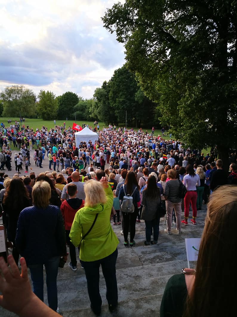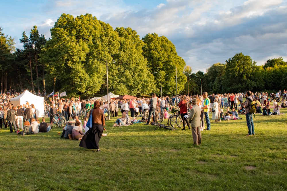 Artėjant 21 val. Skaistakalnio parko aikštelė staiga ėmė sparčiai pilnėti, panevėžiečiai būriais traukė giedoti himno.
