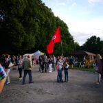 Ant pikniko vejos, tolimesniame parko kampelyje, Valstybės šventę tyliai šventė ir nušalintas Panevėžio meras Rytis Račkauskas. Kitame gale nuo jo armoniką traukė buvęs miesto vadovas Vitalijus Satkevičius.