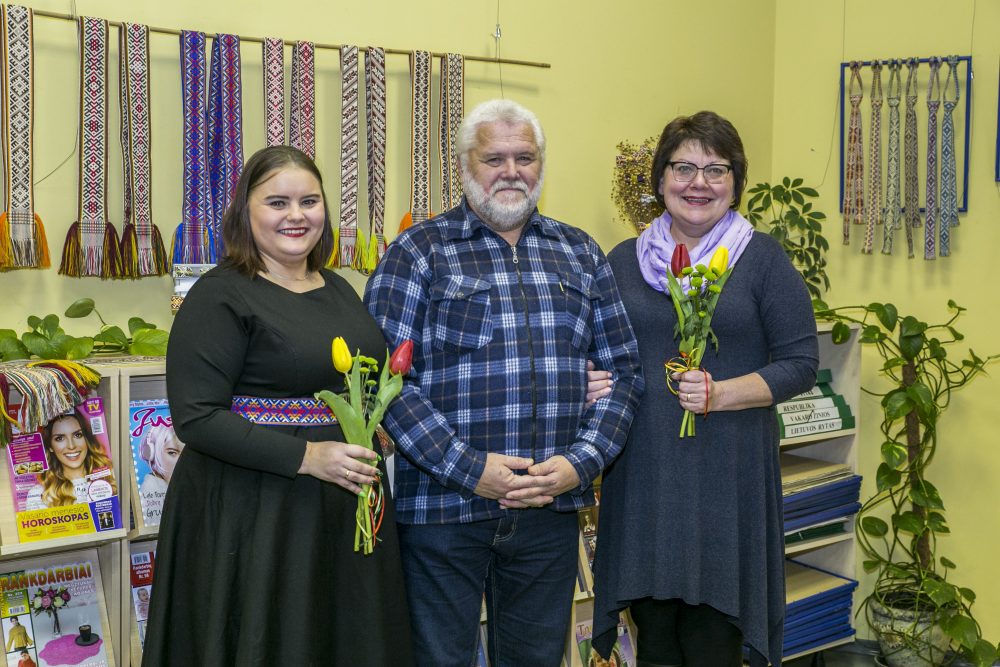 Kai Lietuva šventė tūkstantmetį, gavau užsakymą padaryti tūkstantį juostelių – knygų skirtukų Seimui. Turėjau dar ir kitų užsakymų. Vyras, matydamas, kad niekaip nespėsiu, pasisiūlė padėti. Iš pradžių jam buvo patikėta užduotis ruošti siūlus, o dabar jau sėda ir prie staklių. Nors dirbant kartu būna visko, tačiau esame linksmi žmonės, todėl taip puikiai sekasi austi“, – sutuoktinio įsitraukimu džiaugėsi tautodailininkė.