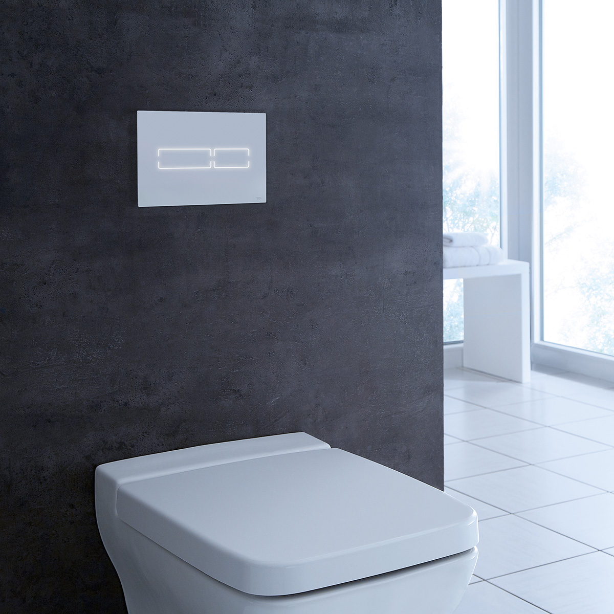 TECElux Mini – elektroninė vandens nuleidimo plokštelė iš stiklo, balto arba juodo, montuojama arba ant sienos, arba lygiai su jos paviršiumi. Ji ne tik atlieka kelias funkcijas, bet ir pati yra stilinga detalė vonios interjere. Elektroninė plokštelė suveikia, vanduo nuleidžiamas neprilietus arba vos švelniai palietus mygtuko sritį. Šviečiantys mygtuko kontūrai tamsiame kambaryje ar naktį tarnauja kaip nedidelis jaukus šviestuvėlis sienoje. Atstumo jutiklis, atpažinęs prie tualeto priėjusį asmenį, įjungia šviečiantį mygtuko plotą, kuris padeda susiorientuoti tamsoje.