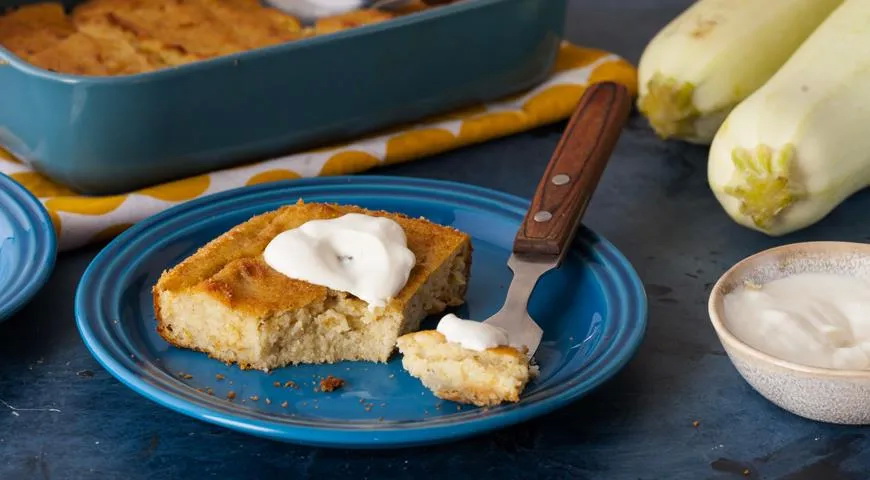 Reikės (6–8 porcijoms): 1,5 kg cukinijų, 200 ml pieno, 1 svogūno, aliejaus, 4 šaukštų manų kruopų, 2 šaukštelių cukraus, 2 kiaušinių, 1 šaukšto maltų džiūvėsių, druskos, grietinės – patiekti.