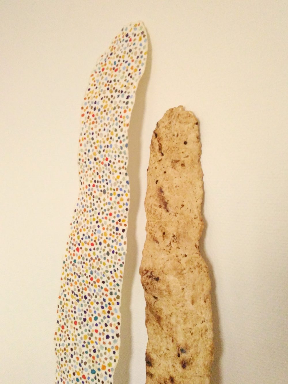 „Neseniai skaičiau meno kritiko Johno Bergerio knygą, kurioje jis atskiria tapybos kūrinį nuo piešinio teigdamas, jog piešta linija tarsi susilieja su popieriumi, pasidaro nebeapčiuopiama. Tapyba, priešingai, kuria lyg ir odą ar kailiuką. Jei brauksime ranka per tapybos darbą, jusime dažų tekstūras, reljefus. Man tapyba ir yra reljefų ieškojimas, stebėjimas, kaip spalva reaguoja su kita, kaip dažas skverbiasi į popierių jį savaip suformuodamas ir užkoduodamas“, – sako Erika.