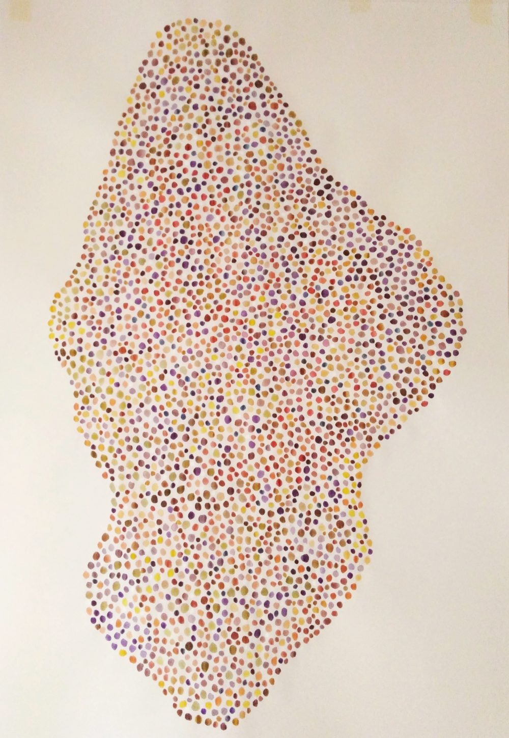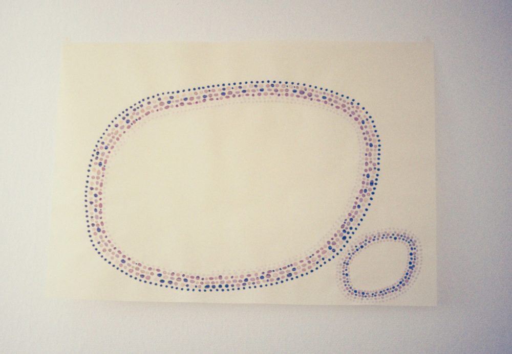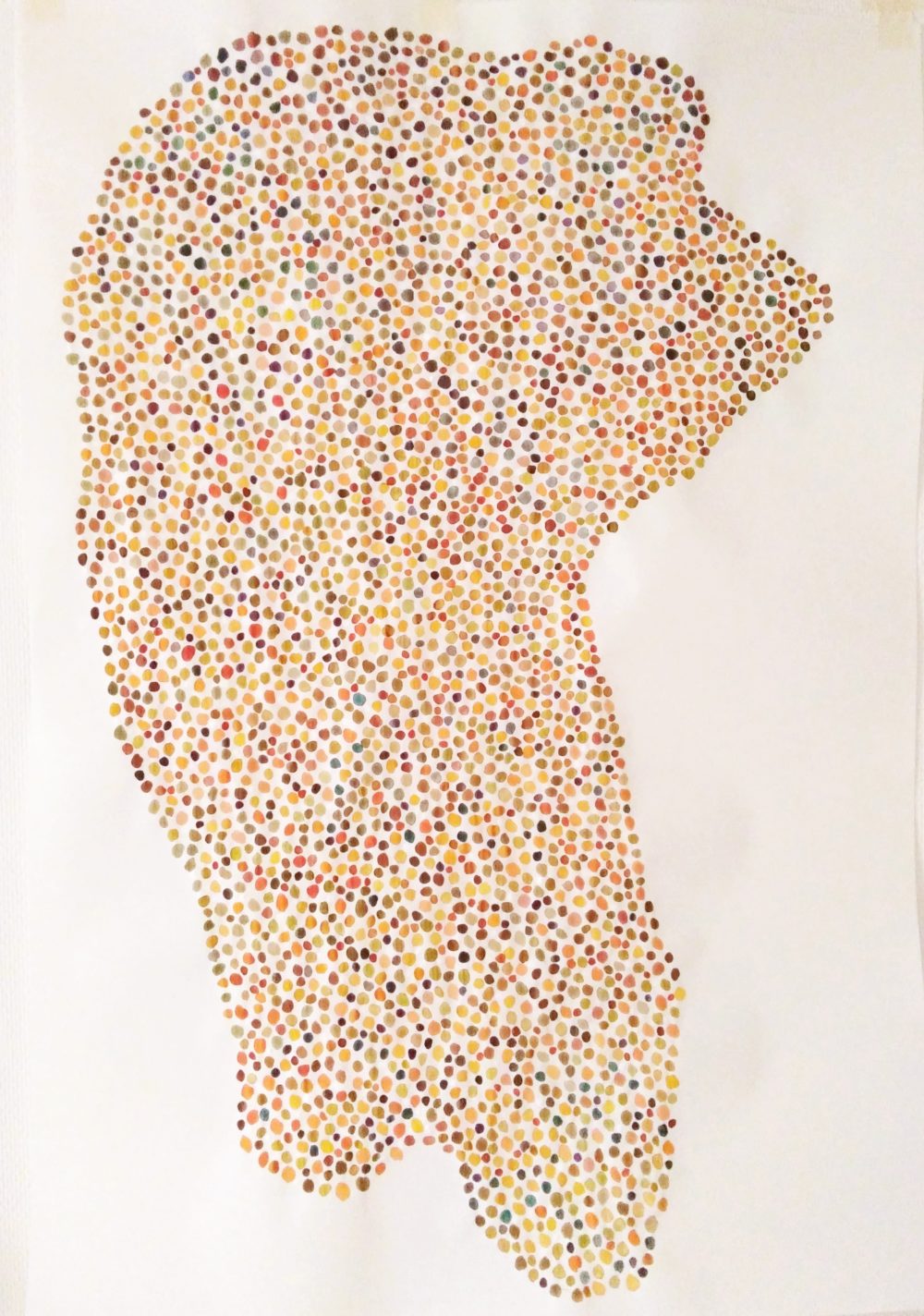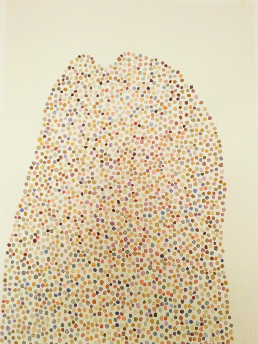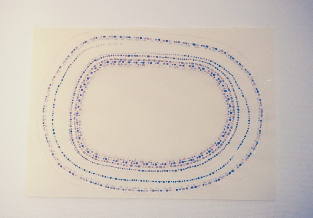 E. Povilonytė pasinėrė į užburiantį popieriaus ir dažo kontakto tyrinėjimą. Erikai dabar pats teptuko ir popieriaus susilietimas yra toks stebuklingas, kad, atrodo, daugiau nieko ir nebereikia.