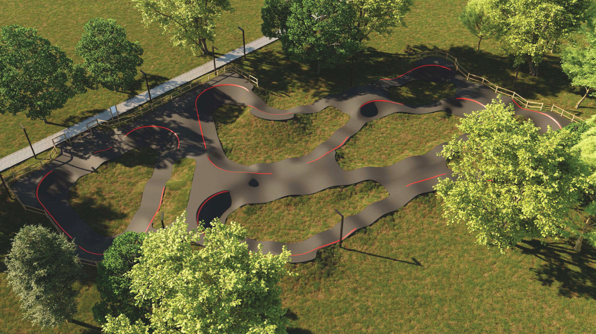 Pagrindinės trasos ilgis numatytas apie 190 metrų, pradedančiųjų – apie 48 metrus. Pastaroji būtų skirta patiems mažiausiems, dar besimokantiems valdyti vadinamąjį balansinį arba paprastą dviratuką. Pagrindinėje trasoje numatoma įrengti didesnius kalnelius, staigesnius posūkius. Abi trasas dviratininkai, riedutininkai, riedlentininkai ir paspirtukininkai galėtų įveikti nemindami pedalų ir nė nesispirdami.