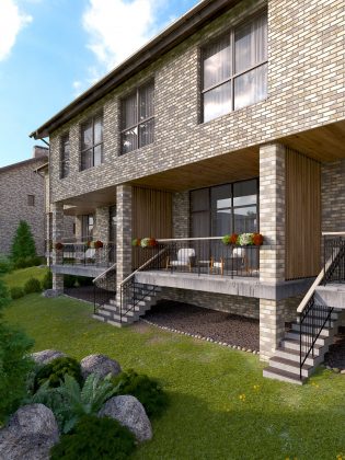 Visi namai ir butai turi labai erdvias terasas ir balkonus su vaizdu į parką.