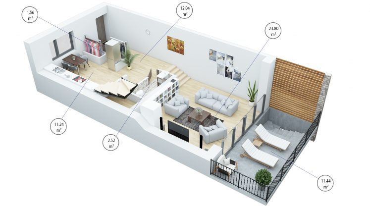 • 4 kamb.: nuo 116 m2 ir 23 m2 antresolės iki 176 m2 ir 36 m2 antresolės