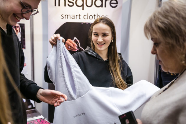 „Iš įdomesnių verta paminėti šių metų geriausios Lietuvos jaunosios bendrovės „Insquare“, įkurtos Vilniaus mokinių, kurie atstovavo Lietuvai Europos jaunųjų bendrovių konkurse, išmaniųjų drabužių idėją. Jų siūlomi džemperiai turi paslėptas kišenėles, leidžiančias neštis visus reikalingus daiktus be papildomos rankinės ar kuprinės. Sumaniai pritaikyta kišenių technologija suteikia galimybę patogiai atsiskaityti bekontakte banko kortele parduotuvėje tiesiog pridedant ranką prie atsiskaitymo aparato“, – pasakoja R. Valaitytė.