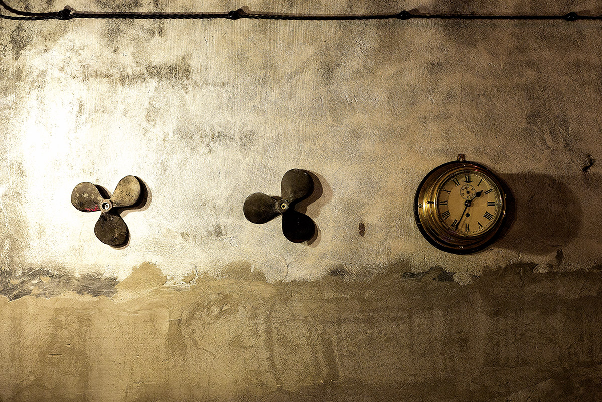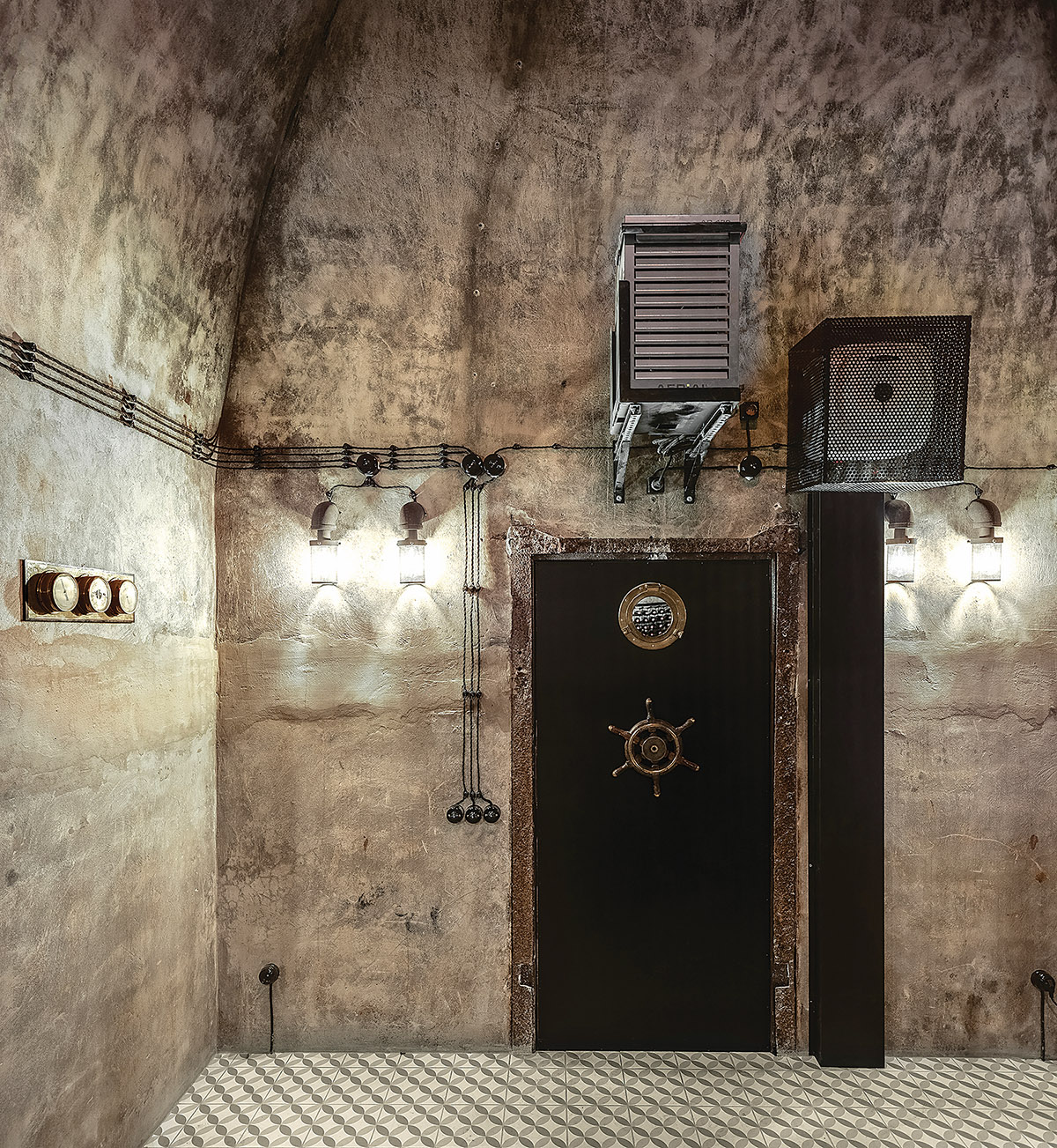 Apvalius bunkerio skliautus pabrėžia metalinės arkos. Rūsio sienos išliko beveik nepakitusios. Pasak pašnekovės, jos tik šiek tiek pašveistos, impregnuotos ir nulakuotos, kad būtų nepavaldžios laikui.
