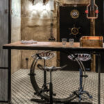 Vienetinį projektą įgyvendinusi „Dizaino virtuvės“ įkūrėja sako, kad stimpanko stiliaus rūsio interjero pageidavo pats šeimininkas. Tokį užsakymą galima vadinti kūrėjo svajone, tačiau sąlygos rūsyje nebuvo idealios. Drėgnoje patalpoje teko labai gerai suplanuoti vėdinimo sistemas, šildymą, įvesti vandentiekį. „Tai labai sudėtinga, nes darbas vyksta kalne, kur žiemą ilgai laikosi neigiama temperatūra“, – sako G. Pažarskytė.