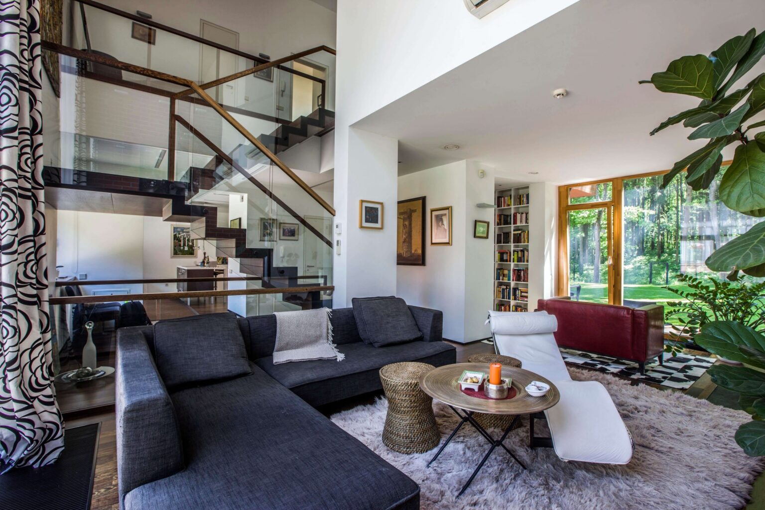 Architekto Gintaro Kuginio projektuotų individualių namų kvartalas atitiko esminius lokacijos kriterijus, kuriuos kėlė tuomet būsto besižvalgę verslininkai Ingrida ir Simonas Gelminauskiai: jis buvo arti gamtos, bet ir arti miesto centro. Iš tiesų Rotušės aikštę iš namų prireikus paprasta pasiekti pėsčiomis. Taip pat paprasta čia gyvenant užmiršti sostinės šurmulį: būsto kiemas remiasi į miško teritoriją, prie tvoros užklysta stirnų, lapių, o naktimis suūbauja pelėda.