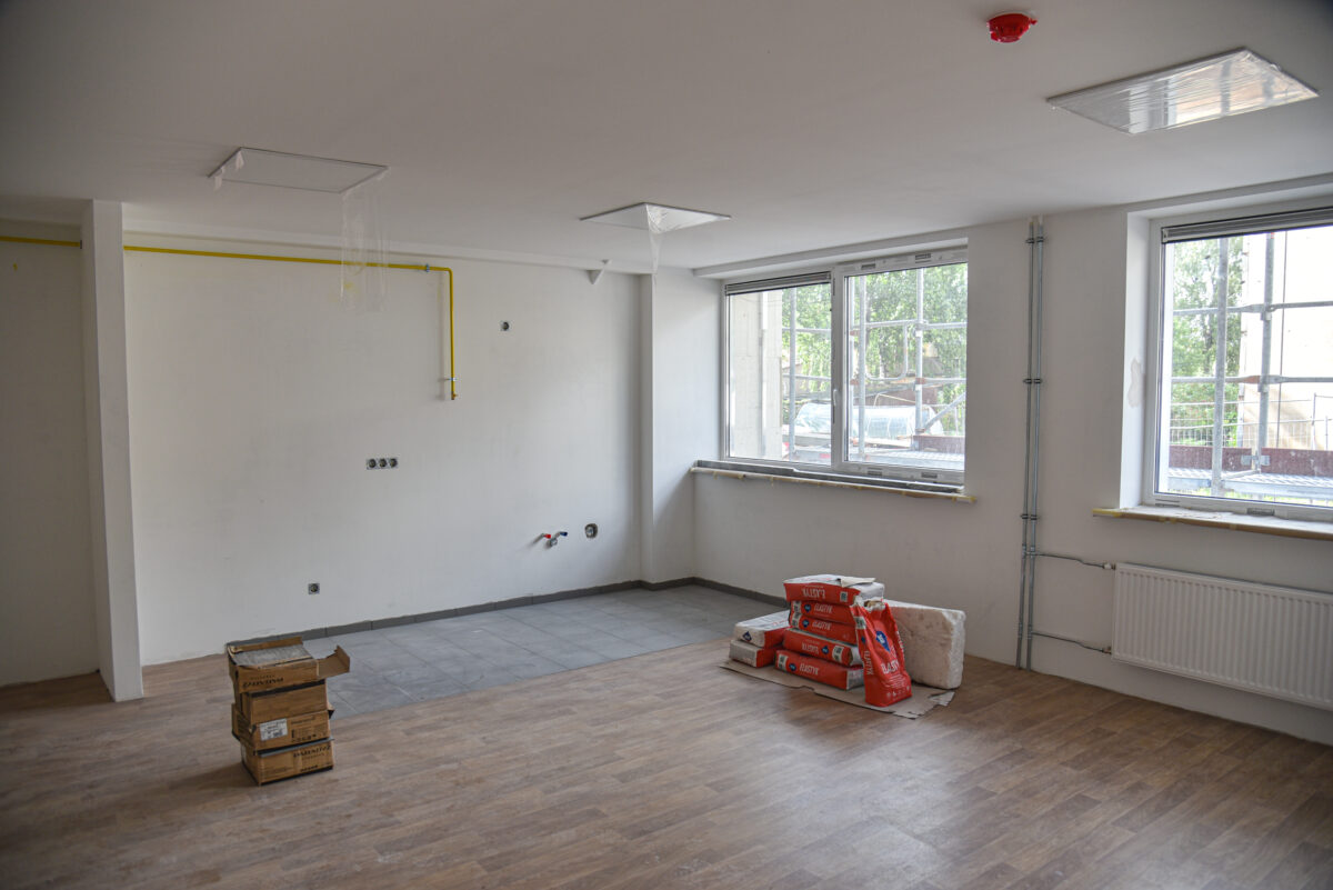 „Praėjusią vasarą pradėti didieji buvusio bendrabučio pertvarkymo į daugiabutį darbai padaryti, belieka užbaigti apdailą, sutvarkyti aplinką ir gyventojai į šį naują daugiabutį jau galės keltis“, – patvirtino miesto Savivaldybės administracijos direktorius Tomas Jukna.