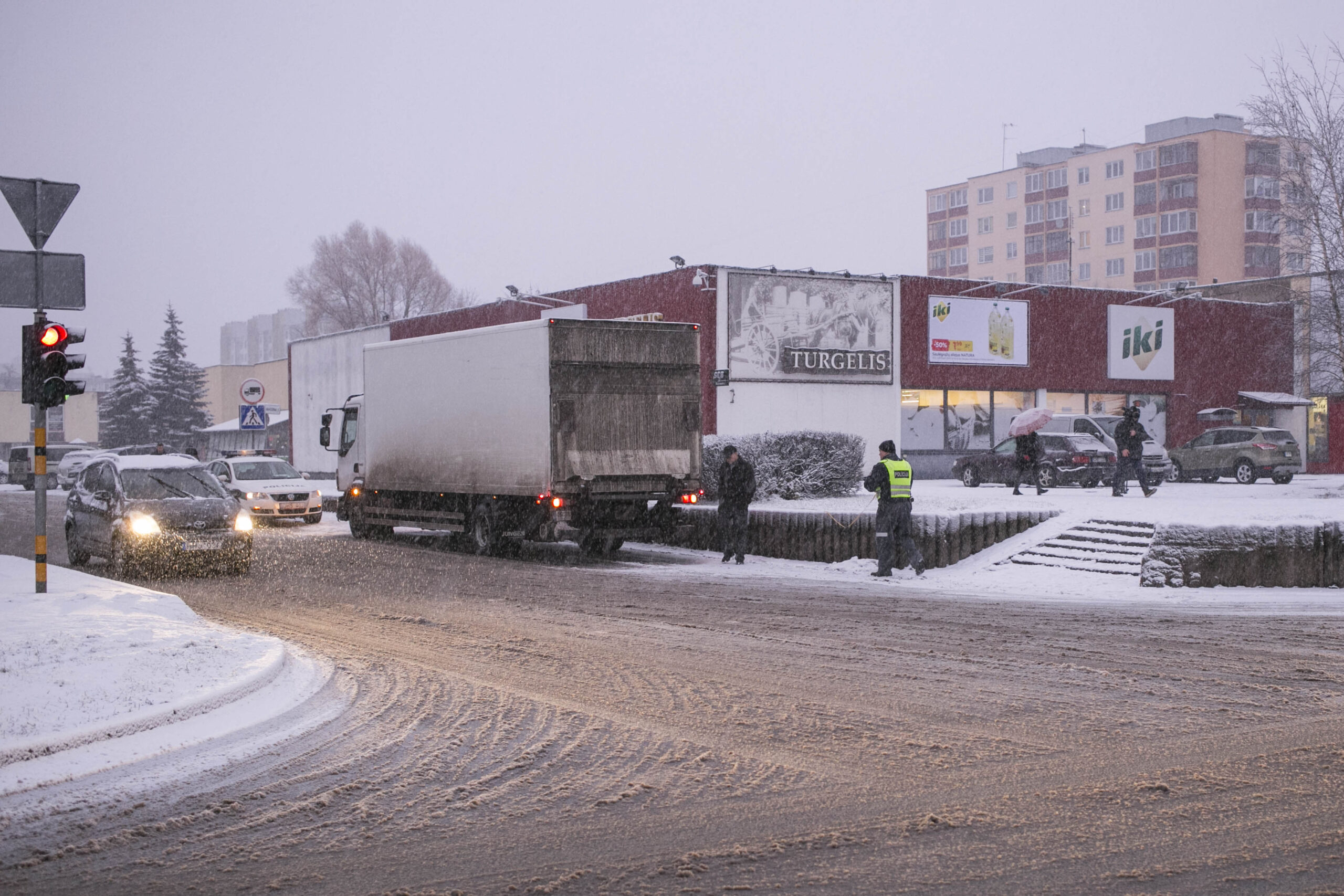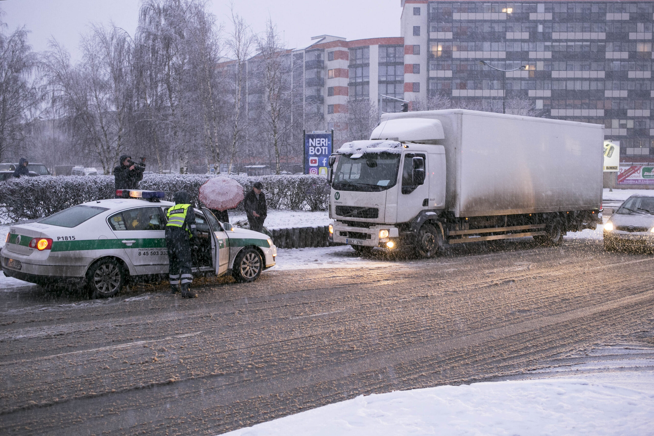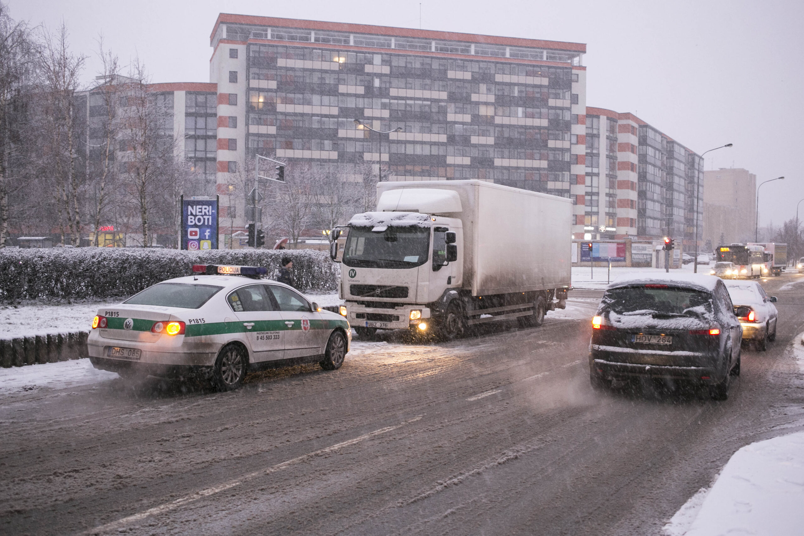 Visą rytą kelius klojanti šlapdriba vėl pridarė rūpesčių vairuotojams. Panevėžio rajone į šalikeles slydo mašinos, o mieste vilkikas partrenkė pėsčiąją.