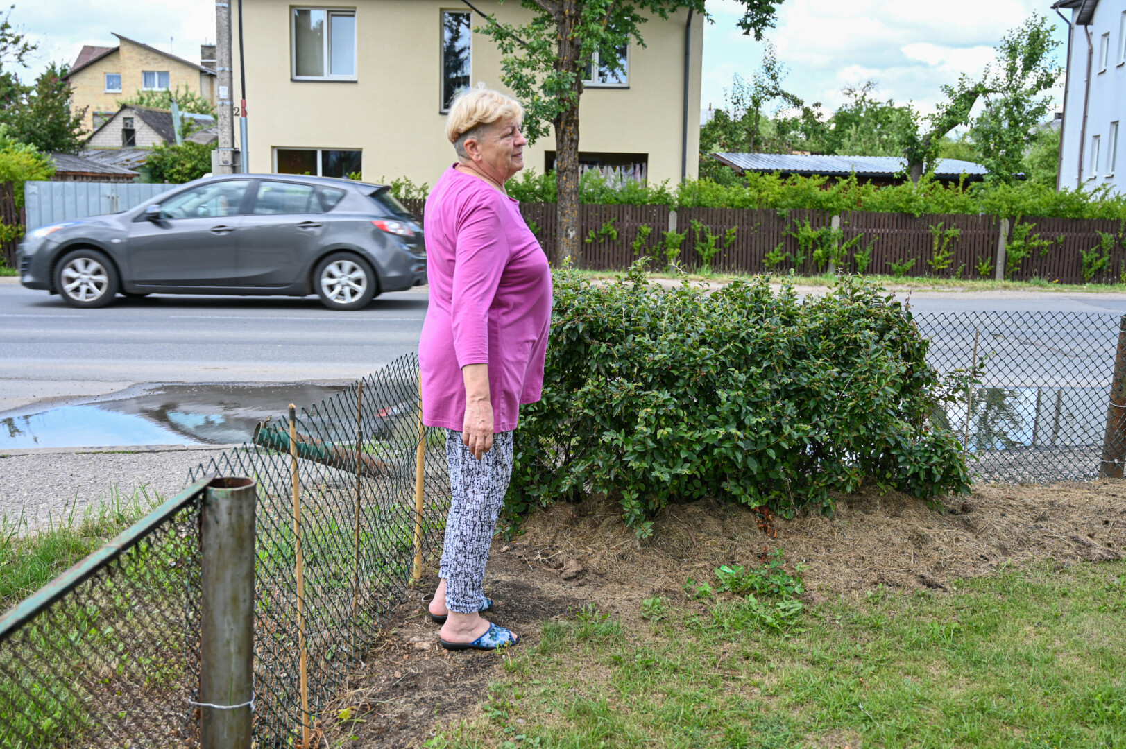 Pasak A. Tamoliūnienės, į jos tvorą automobilis įvažiuoja ne pirmą kartą.