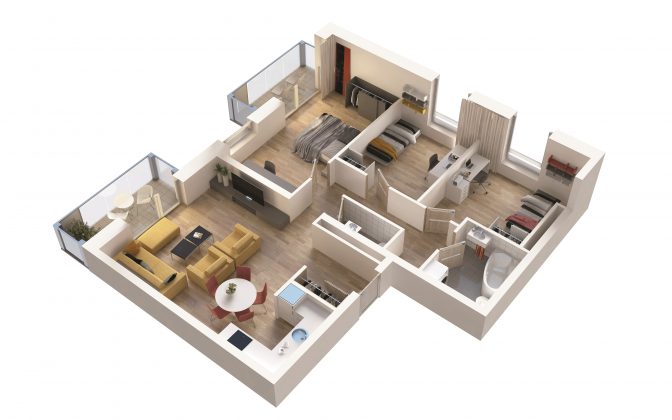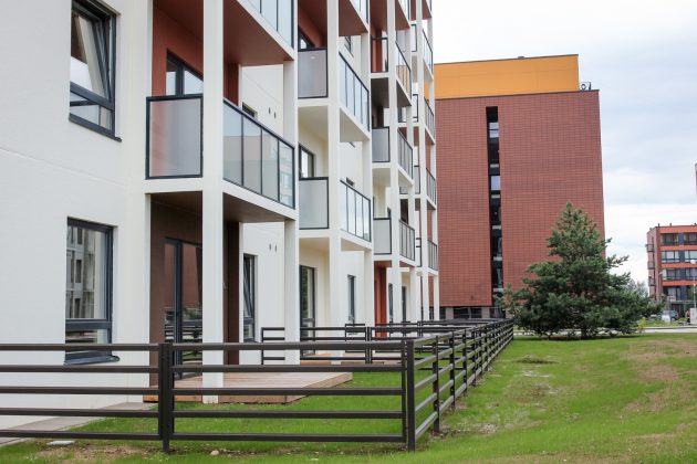 Visuose butuose, esančiuose ne pirmame aukšte, įrengti erdvūs balkonai. Pirmo aukšto butams priklauso medinės terasos individualiuose kiemeliuose, aptvertuose tvorelėmis