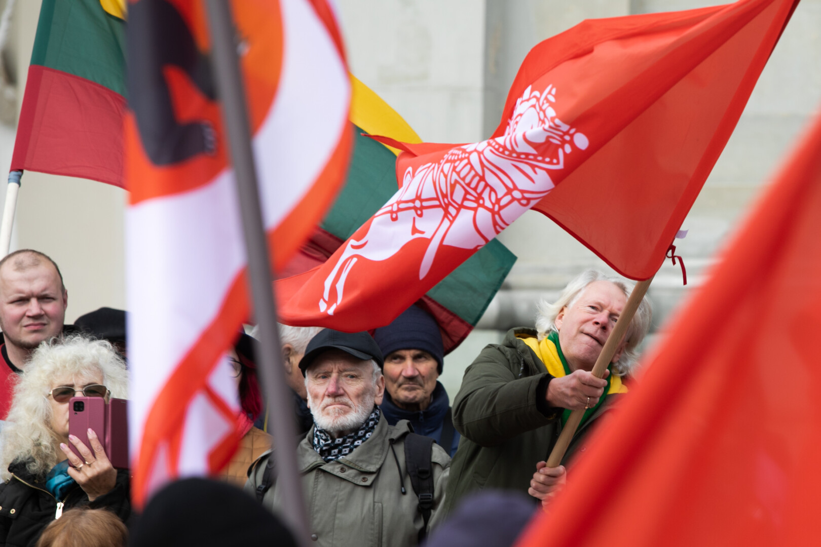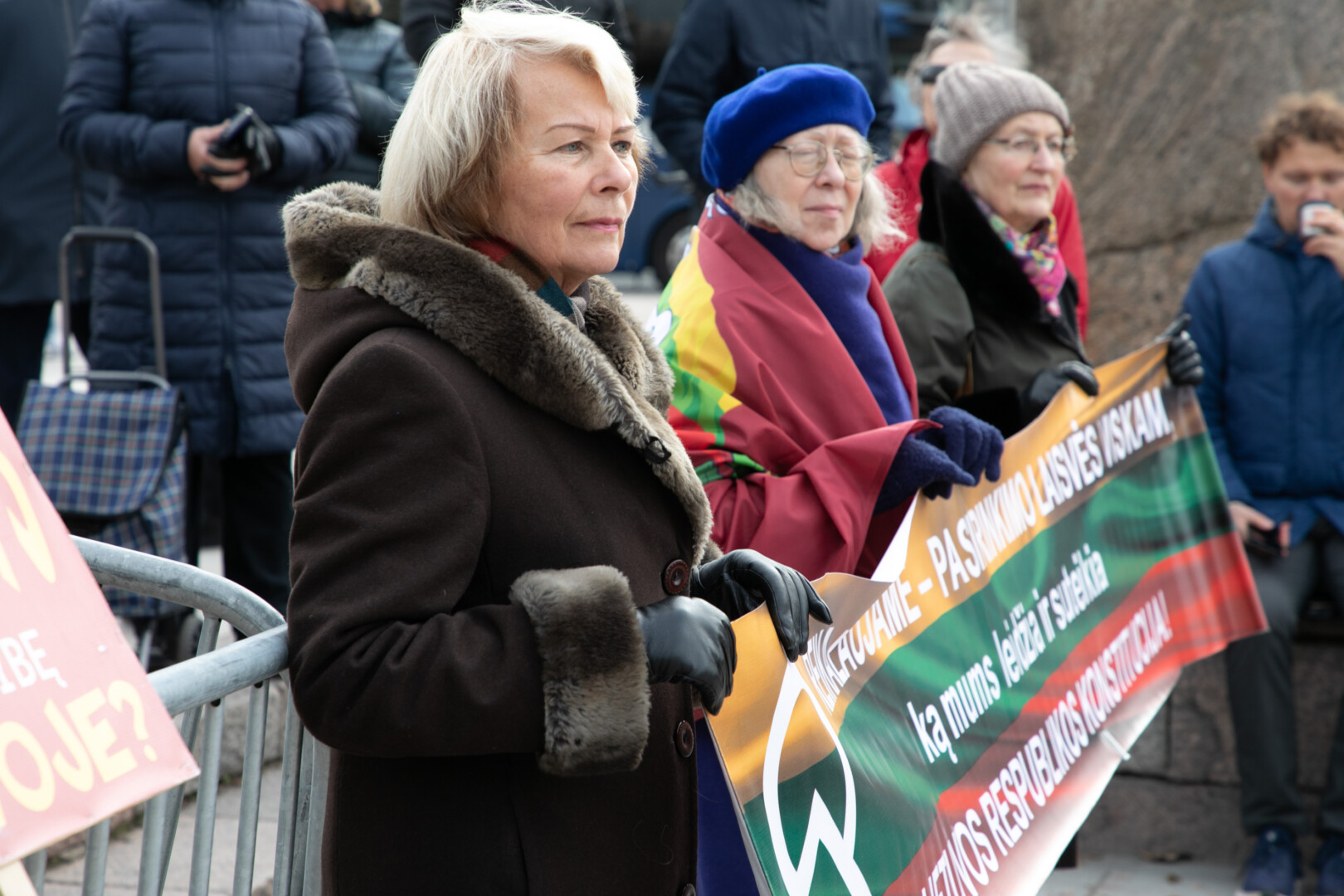 Mitingo dalyviai taip pat iškėlė plakatą, kuriame premjerė Ingrida Šimonytė, Seimo pirmininkė Viktorija Čmilytė-Nielsen, ministrai Gabrielius Landsbergis, Aušrinė Armonaitė ir Arūnas Dulkys bei Vilniaus miesto meras Remigijus Šimašius kaltinami „sutrypę Lietuvos Konstituciją“.