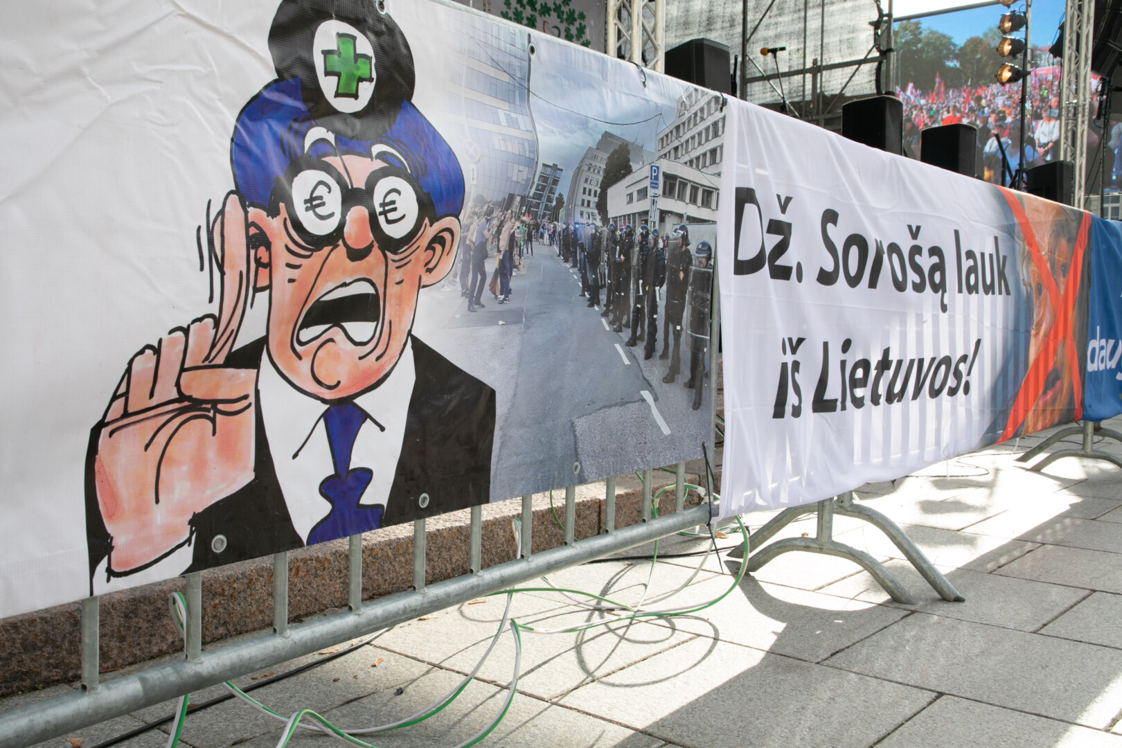 Iš visos Lietuvos atvykę protestuotojai nešini Lietuvos, savų regionų vėliavomis, organizatorių pasisakymams parengta scena, ant kurios pakabinti plakatai „Kas miega demokratijoje – atsibus diktatūroje“, „Dž. Sorošą lauk iš Lietuvos!“, „Mažiau Briuselio, daugiau sveiko proto!!!“, „Stop Diktatūrai Lietuvoje“, „Seimo narys be sąžinės – Tauta be ateities“.