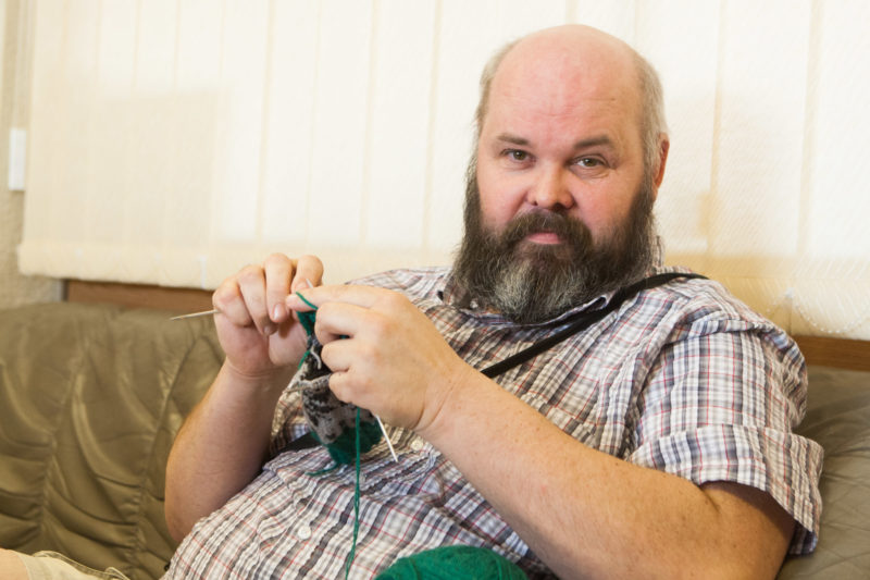 „Sėdžiu ir mezgu“, – atsako panevėžietis Raimundas Mikuševičius, paklaustas, ką jis veikiantis.