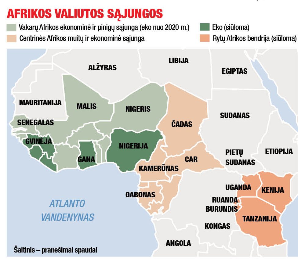 Euro krizė daugumą žmonių atbaidė nuo valiutos sąjungų. Tik ne Afrikoje. Lapkritį penkių Rytų Afrikos bendrijai priklausančių šalių vadovai sutarė per dešimt metų sudaryti pinigų sąjungą. Mėnesiu anksčiau Vakarų Afrikos politikai susitarė dėl plano per kelerius ateinančius metus įvesti naują bendrą valiutą – eko. Ilgainiui zona turėtų apimti ir dabartinį Vakarų Afrikos valiutos bloką, bet centrinė žemyno dalis liks savarankiška.