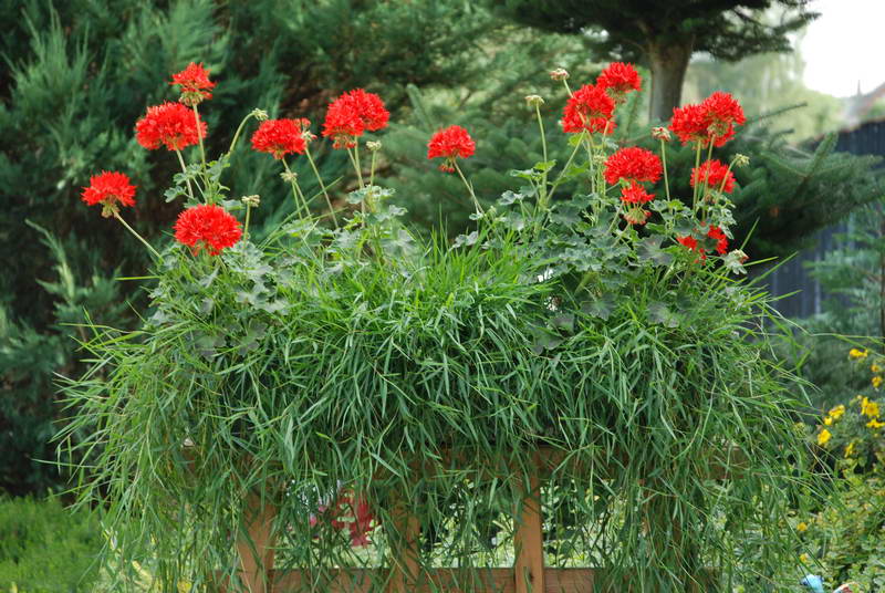 Viena nereikliausių – kaskadinė svyrančioji pelargonija, sodinama ir į lovelius, ir į pakabinamus indus. Atspari karščiams, nereikli drėgmei (norint vešlesnio augalo, reikėtų laistyti dažniau). Pilnavidurės pelargonijos turi tokias pačias ypatybes, bet intensyviau barsto žiedlapius.