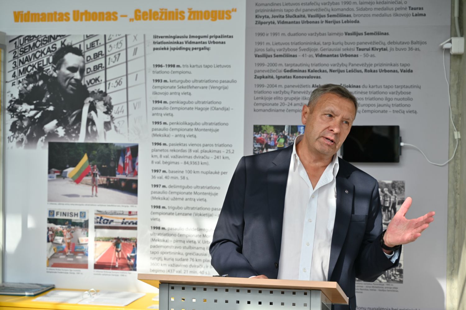 „Kad Panevėžys – sporto miestas, jau seniai niekam nekyla abejonių. Negana to, galime didžiuotis, kad esame triatlono sostinė. Ilga triatlono istorija, išskirtiniai sportininkai, čia vykstančios triatlono varžybos ir jas lydinčios panevėžiečius bei sporto svečius pritraukiančios šventės jau seniai tapo mūsų miesto tapatybės dalimi. Ši triatlonui skirta ekspozicija visiems mums primena įdomiausius faktus ir aukščiausius rezultatus, kuriuos neįtikėtinomis valios pastangomis pasiekė panevėžiečiai sportininkai. Dėkoju ekspozicijos sumanytojams ir rėmėjams už atliktą darbą. Linkiu triatlonininkams ir toliau stebinti pasiekimais. Sėkmės Jums visiems!“, – sveikinimo kalbą sakė Panevėžio miesto meras Rytis Račkauskas.