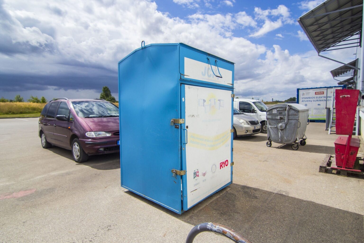 Labdaros konteineris paslėptas nuo RYO lankytojų akių – nustumtas į vidinį, tarnybinį, prekybos centro kiemą.