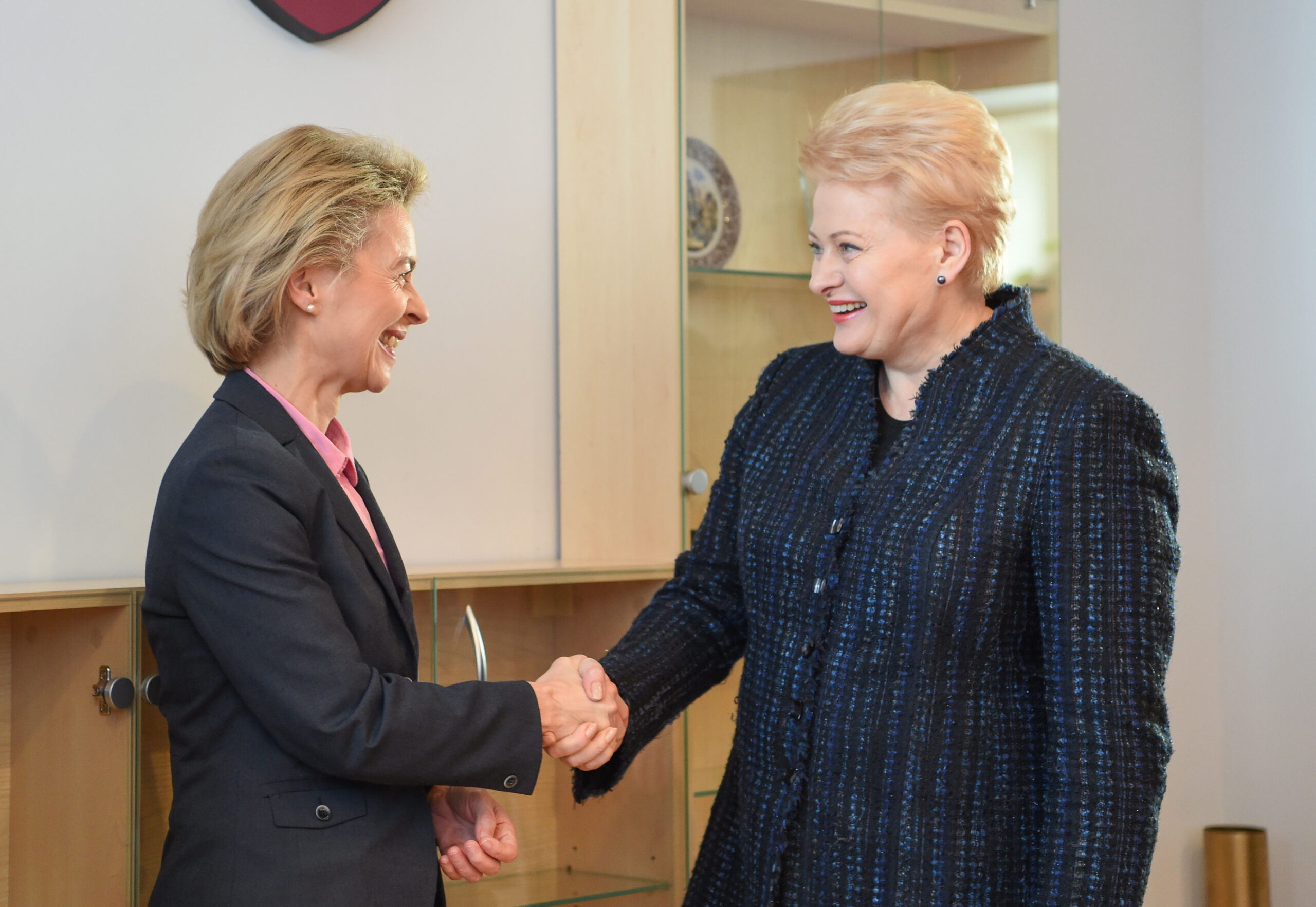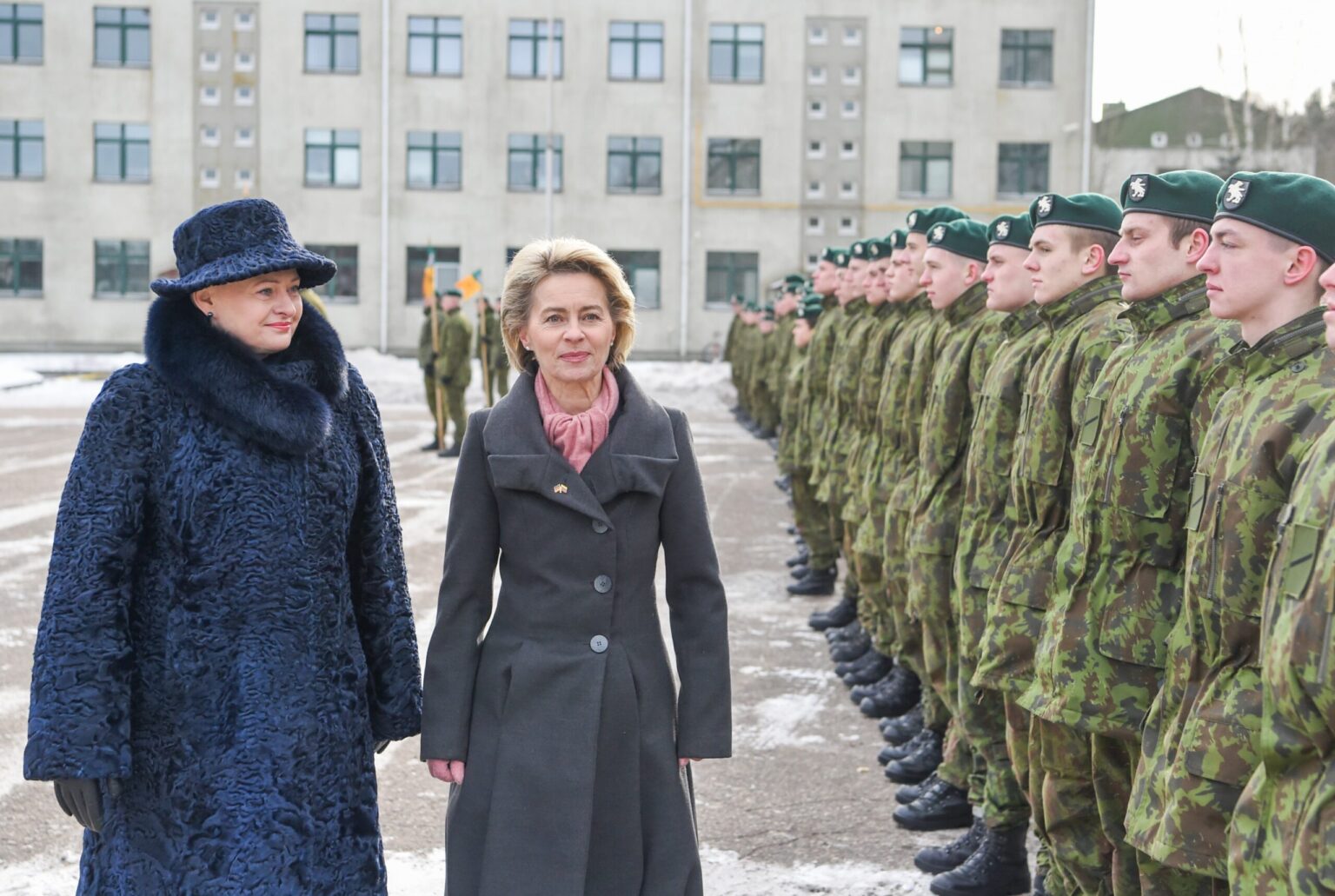 Priminusi sovietų ir nacių okupacijas, Vokietijos gynybos ministrė Ursula von der Leyen sakė, kad daugiau niekada Lietuvos laisvė ir nepriklausomybė nebebus aukojama. „Stovime vieningi, kad Lietuvos žmonės galėtų gyventi be baimės ir patys kurti savo ateitį“, – kalbėjo Vokietijos ministrė. Vėliau žurnalistų paklausta, ar Vokietijos įsipareigojimus gali pakeisti rugsėjį vyksiančių rinkimų rezultatai, U. von der Leyen atsakė, kad „įsipareigojimus tvirtai remia visos partijos“.