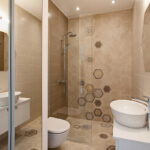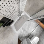 Specialistė sako, kad vis dažniau atsisakoma dušo kabinų ir dušo erdvė neturi jokio padėklo. „Taip galima išlaikyti vientisesnį vonios kambario vaizdą, neskaidoma erdvė. Naudojame kabinas su išstumiamomis durimis. Kai kabina nenaudojama, durys išstumiamos ir erdvė praplečiama“, – paaiškina ji.