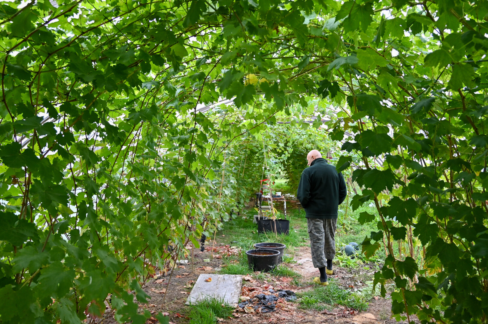 Dar viena paslaptis, garantuojanti gerą derlių – vynuoges auginti ne lauke, o šiltnamyje. E. Mėlynis turi ir lauke, ir šiltnamyje derančių vynmedžių. Anot jo, derliaus skirtumas – akivaizdus.