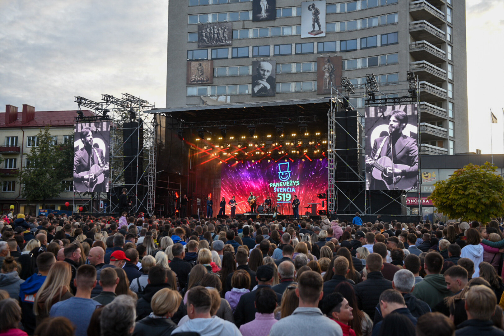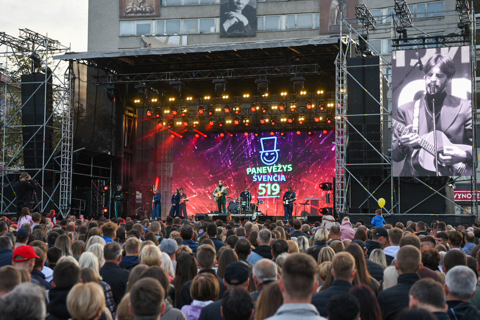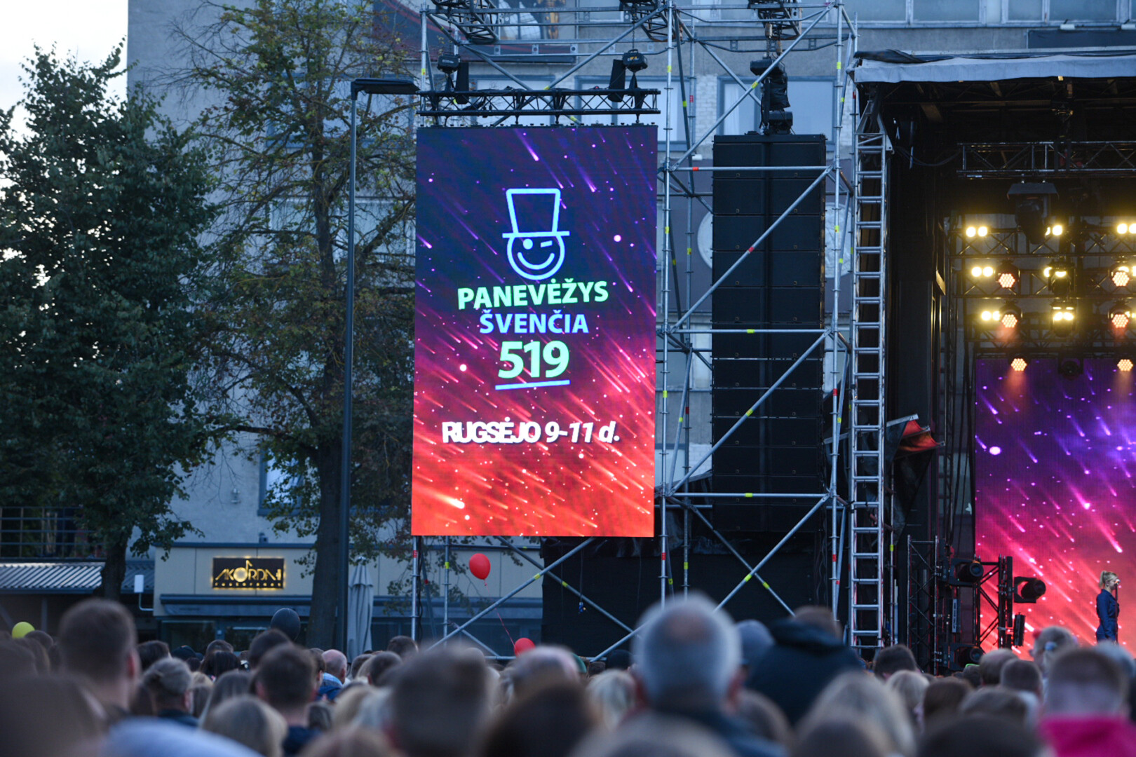Bene laukiamiausias 519-ojo Panevėžio gimtadienio akcentas – šventinis vakaro koncertas. Didžiojoje scenoje Laisvės aikštėje nepertraukiamą šventinę nuotaiką kūrė muzika – panevėžiečiai ir miesto svečiai šįvakar išvydo net keturias populiariausias Lietuvos grupes ir atlikėjus.