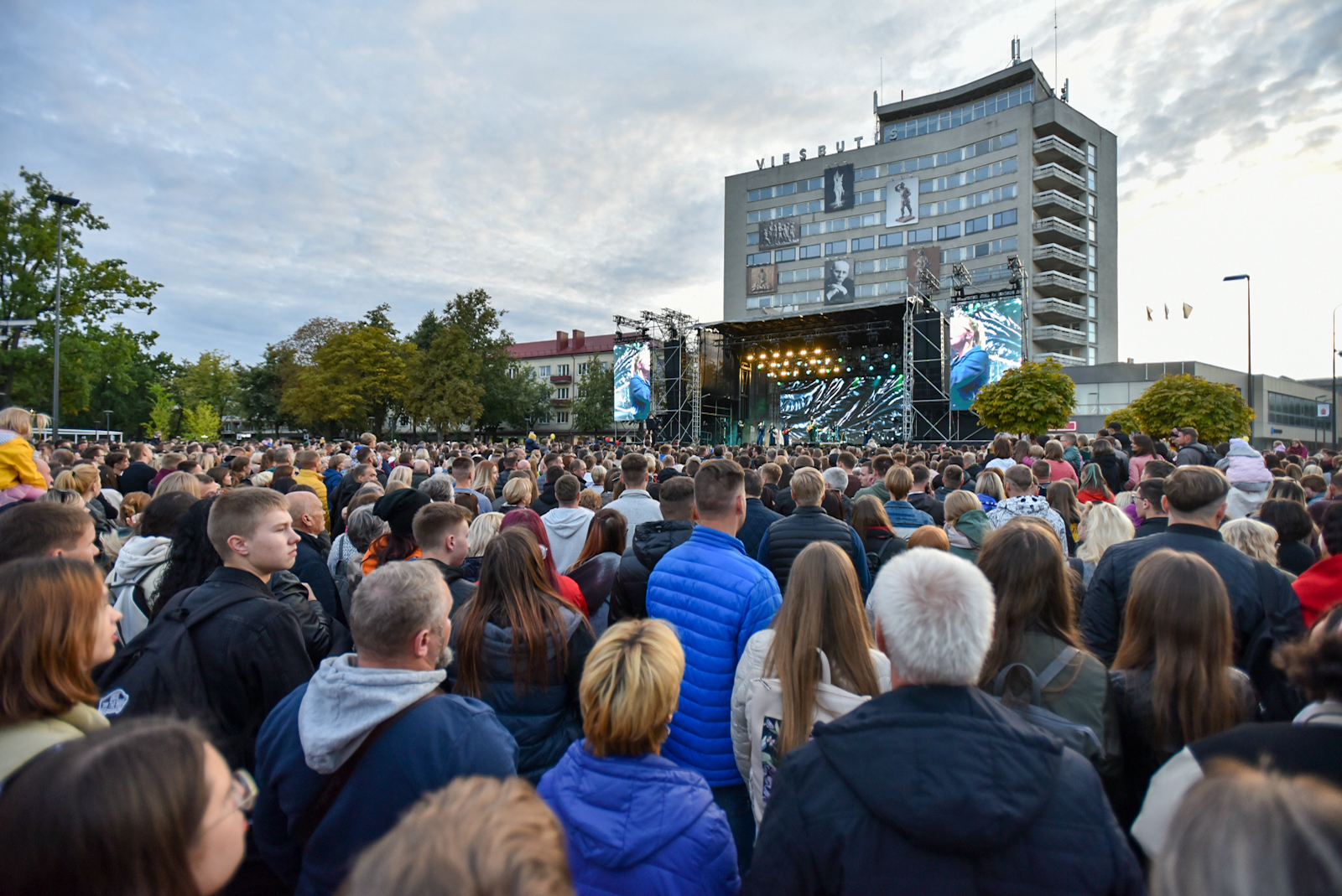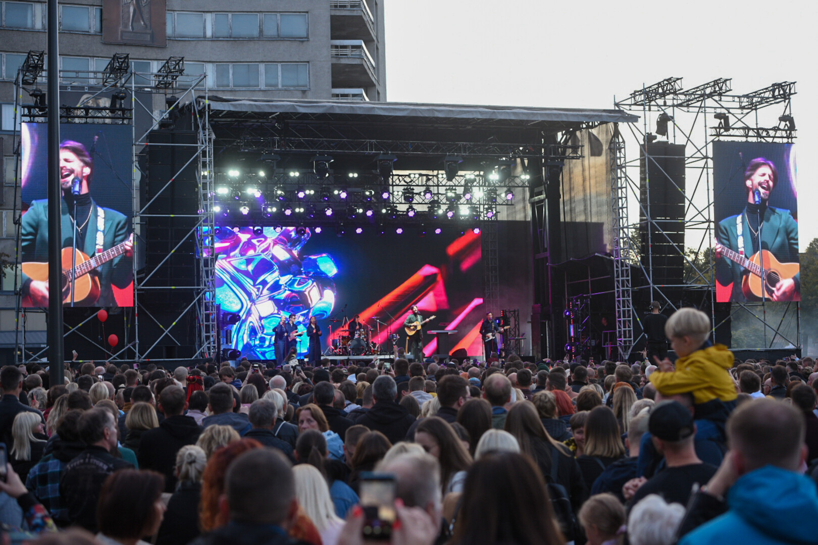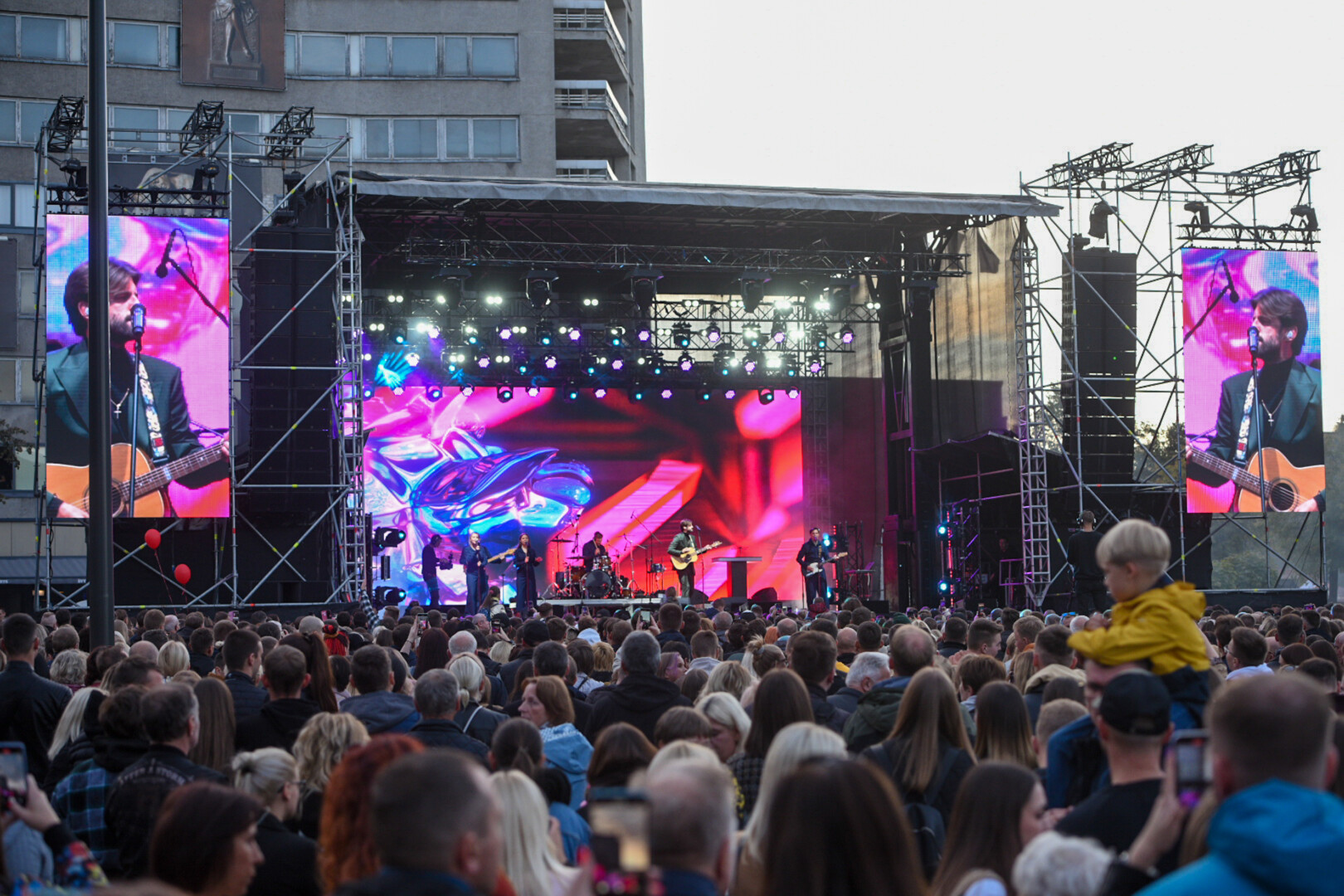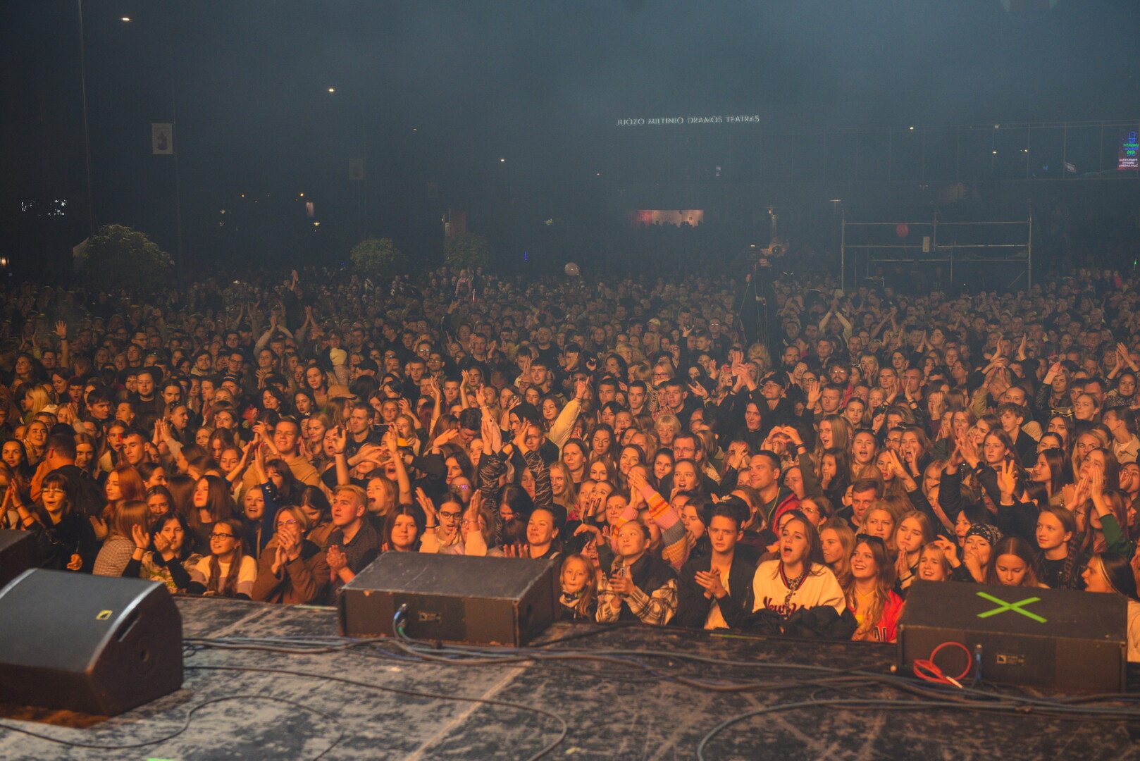 Bene laukiamiausias 519-ojo Panevėžio gimtadienio akcentas – šventinis vakaro koncertas. Didžiojoje scenoje Laisvės aikštėje nepertraukiamą šventinę nuotaiką kūrė muzika – panevėžiečiai ir miesto svečiai šįvakar išvydo net keturias populiariausias Lietuvos grupes ir atlikėjus.