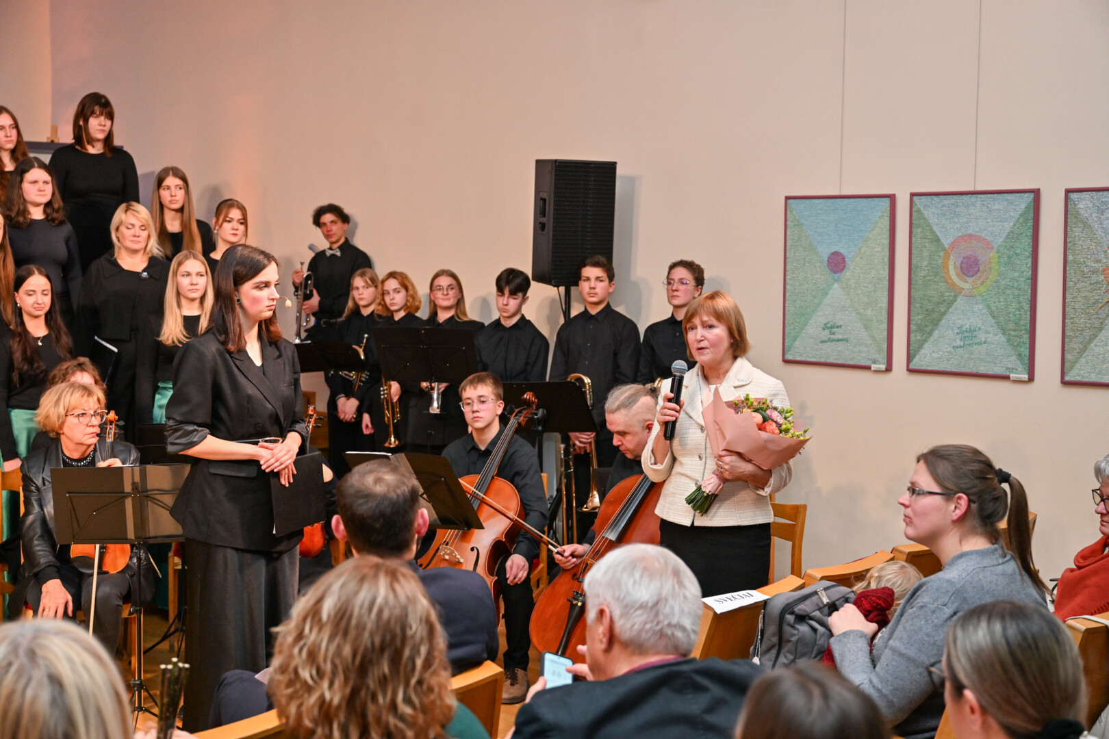 „Vytauto Mikalausko menų gimnazijoje susitinkame tam, kas mus jungia pačiu šviesiausiu būdu – muzikai. Šv. Cecilijos diena primena, kad muzika turi galią atverti žmogaus širdį – ji kviečia sustoti, klausytis ir išgirsti. Linkiu visiems dainuojantiems šios scenos šviesoje pajusti kūrybos džiaugsmą, drąsą ir įkvėpimą. Tegu jūsų atliekama muzika keliauja toli ir paliečia tuos, kuriems jos labiausiai reikia. Kiekvienas jūsų balsas šiandien yra dovana – sau, vieni kitiems ir miestui, kuris tiki jaunais kūrėjais. Tegul jūsų šiandienos muzika pripildo šią erdvę šviesos ir ramybės, kurią kiekvienas išsinešime su savimi“, – sakė Panevėžio miesto merė Loreta Masiliūnienė.