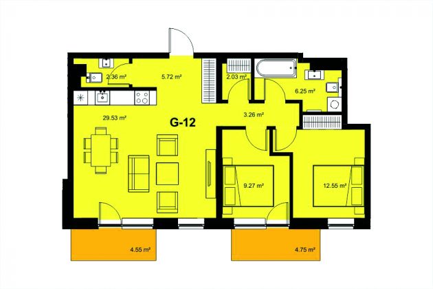 Skandinaviškos technologijos, trisluoksnės surenkamos gelžbetonio plokštės. Vidinis sluoksnis – 200 mm POLIURETANO (PIR) apšiltinimas.