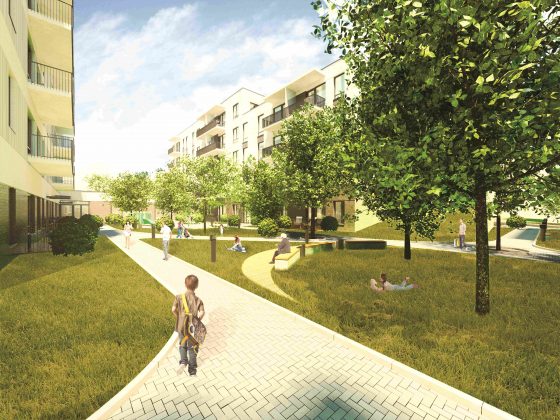 Daugiabučių namų kvartale įrengta vaikų žaidimo aikštelė, suoliukai, teritorija aptverta ir apželdinta, išsaugomi esami medžiai, pakloti šaligatviai, įrengiamas kiemų ir gatvių apšvietimas.