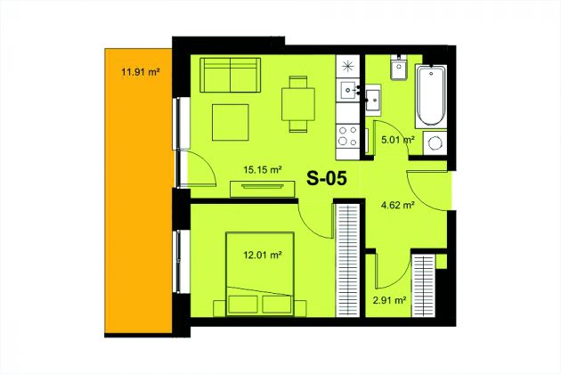 Sanitarinių mazgų patalpose – silikatinis mūras. Sienos tarp kambarių yra iš dviejų sluoksnių gipso kartono plokščių su metaliniu karkasu. Viduje – mineralinės vatos užpildas.