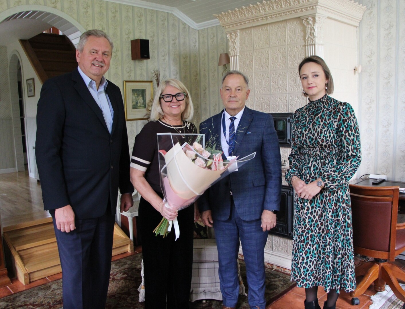 Aužbikavičius sveikino ir Savivaldybės administracijos Civilinės metrikacijos ir archyvų skyriaus vedėja Rūta Rudė. Vedėja linkėjo sutuoktiniams ir toliau kurstyti šeimos židinį rodant pavyzdį vaikams ir anūkams.