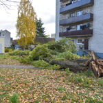Stichija neaplenkė ir Panevėžio. Aldonos gatvėje, daugiabučių namų pašonėje, vėjas nulaužė seną medį, toks pat virto ir Nepriklausomybės aikštėje.