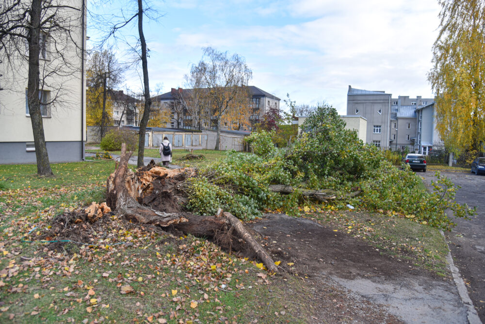 Stichija neaplenkė ir Panevėžio. Aldonos gatvėje, daugiabučių namų pašonėje, vėjas nulaužė seną medį, toks pat virto ir Nepriklausomybės aikštėje.
