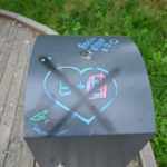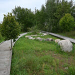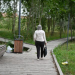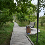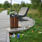 Grįžus iš aukšta žole ir dilgėlėmis apaugusio parko tenka gerai apsižiūrėti, ar neparsineši erkių. Ir batų padus pašveisti, nes ant išklotų medinių takų kas keli žingsniai – dvokiantis, prie padų limpantis keturkojų palikimas.