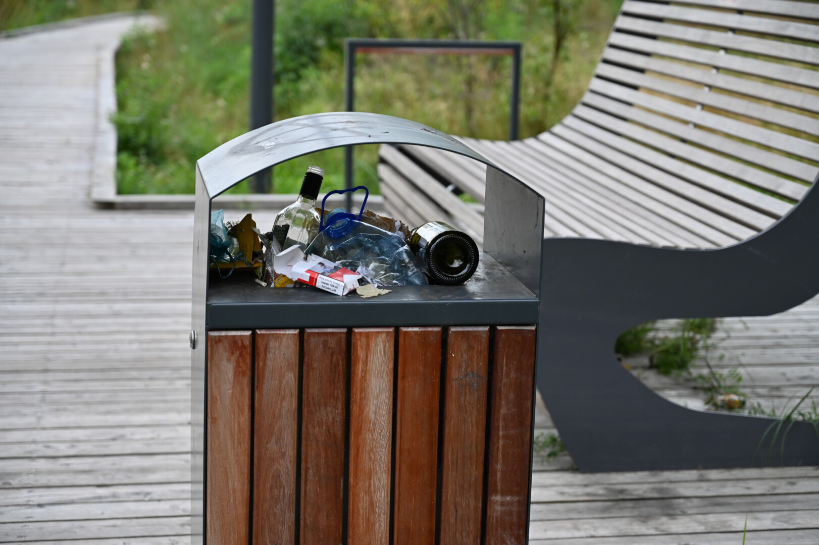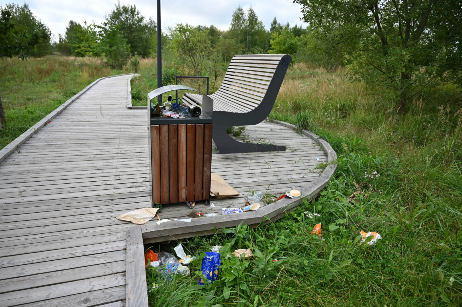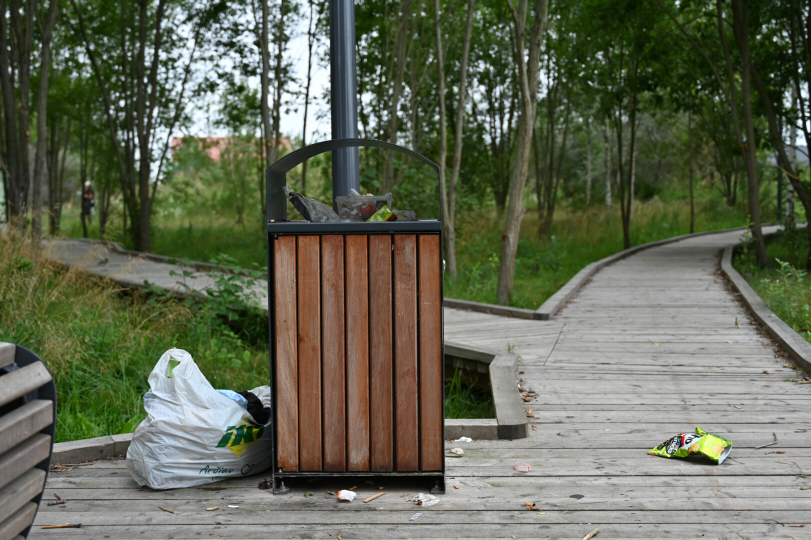 Vienoje parko vietoje netgi matyti atneštas pilnas šiukšlių maišas. Tarp šiukšlių nemažai pridaužytų stiklų.