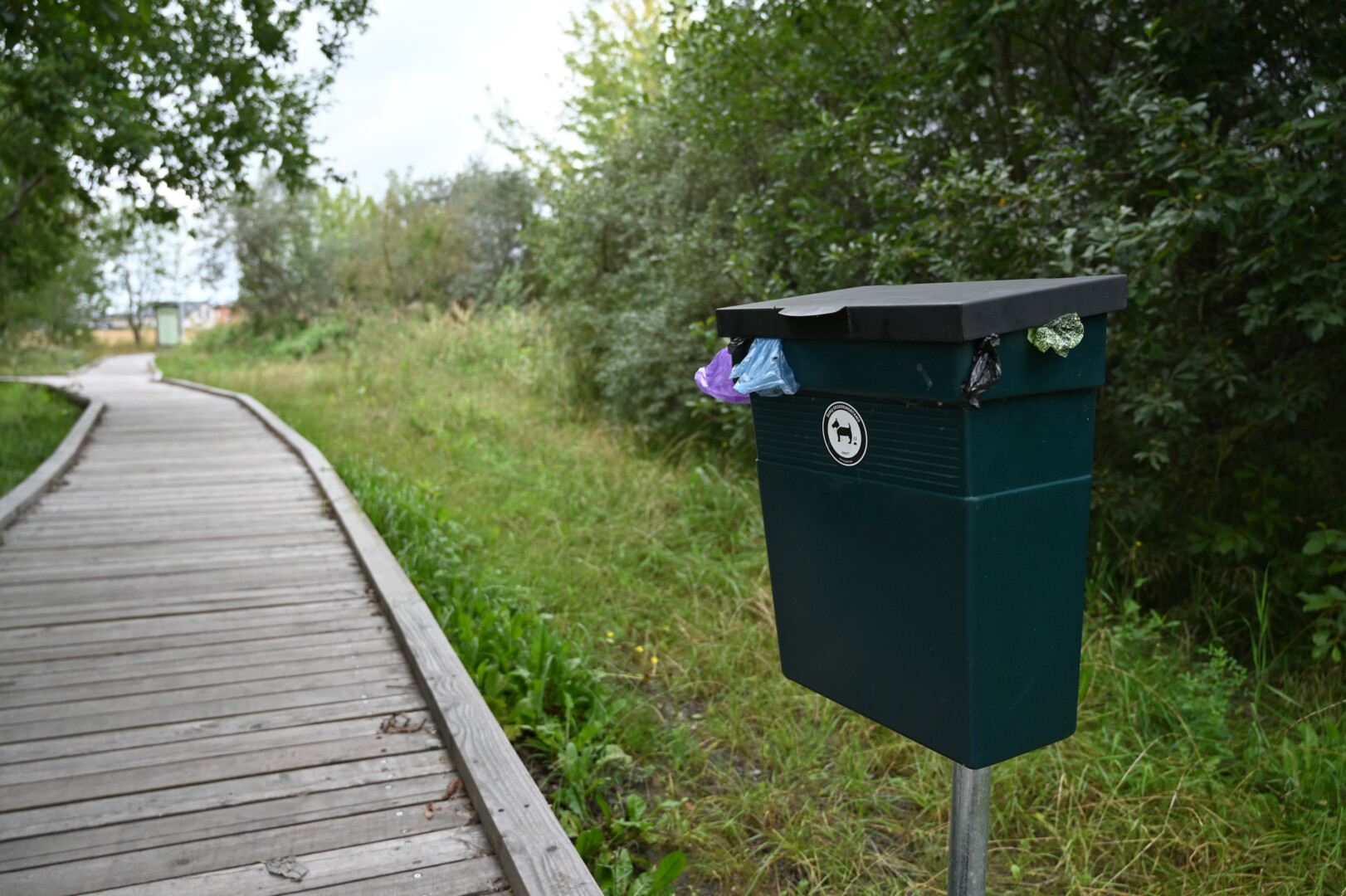 Grįžus iš aukšta žole ir dilgėlėmis apaugusio parko tenka gerai apsižiūrėti, ar neparsineši erkių. Ir batų padus pašveisti, nes ant išklotų medinių takų kas keli žingsniai – dvokiantis, prie padų limpantis keturkojų palikimas.