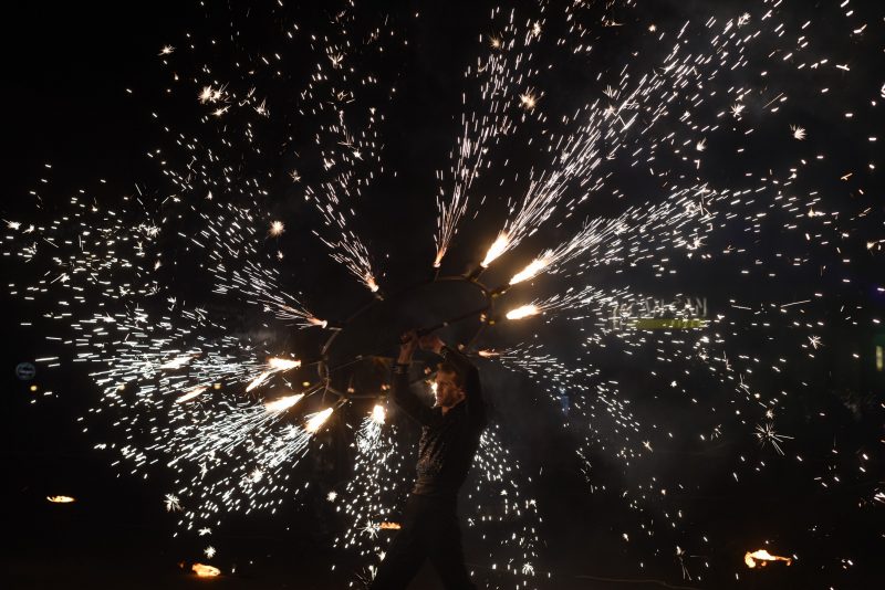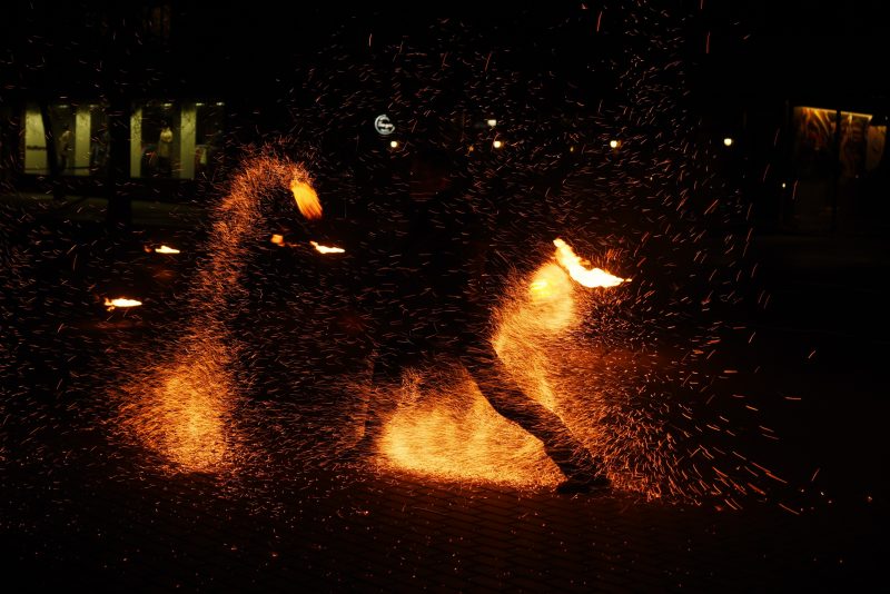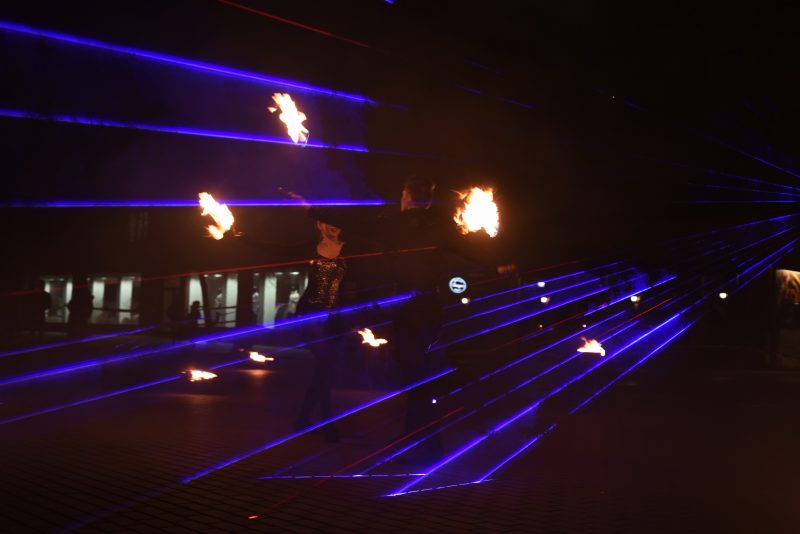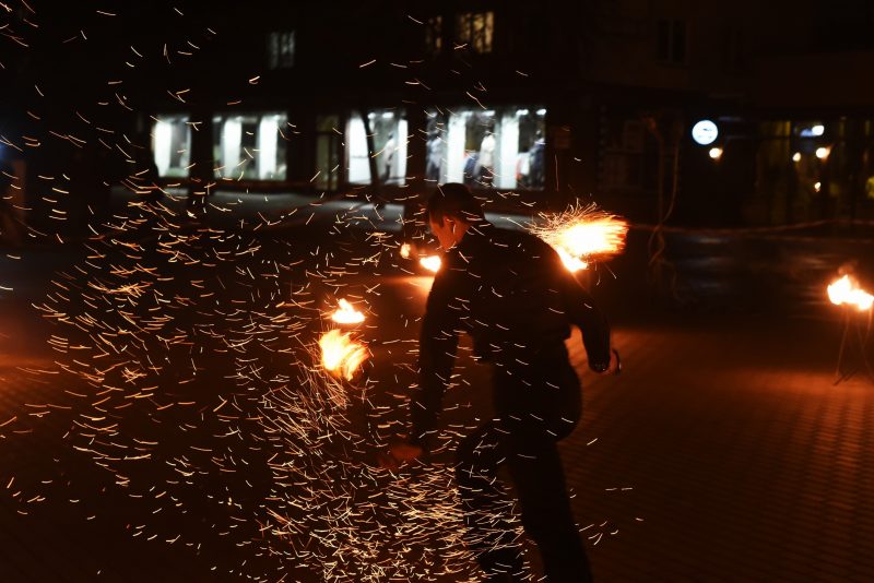 Laisvės aikštę šeštadienio vakarą nušvietė ne elektra, o ugnies bei lazerių atspindžiai . Taip prisijungami prie tarptautinės akcijos „Žemės valanda“, panevėžiečiai planetai ištarė „ačiū“.