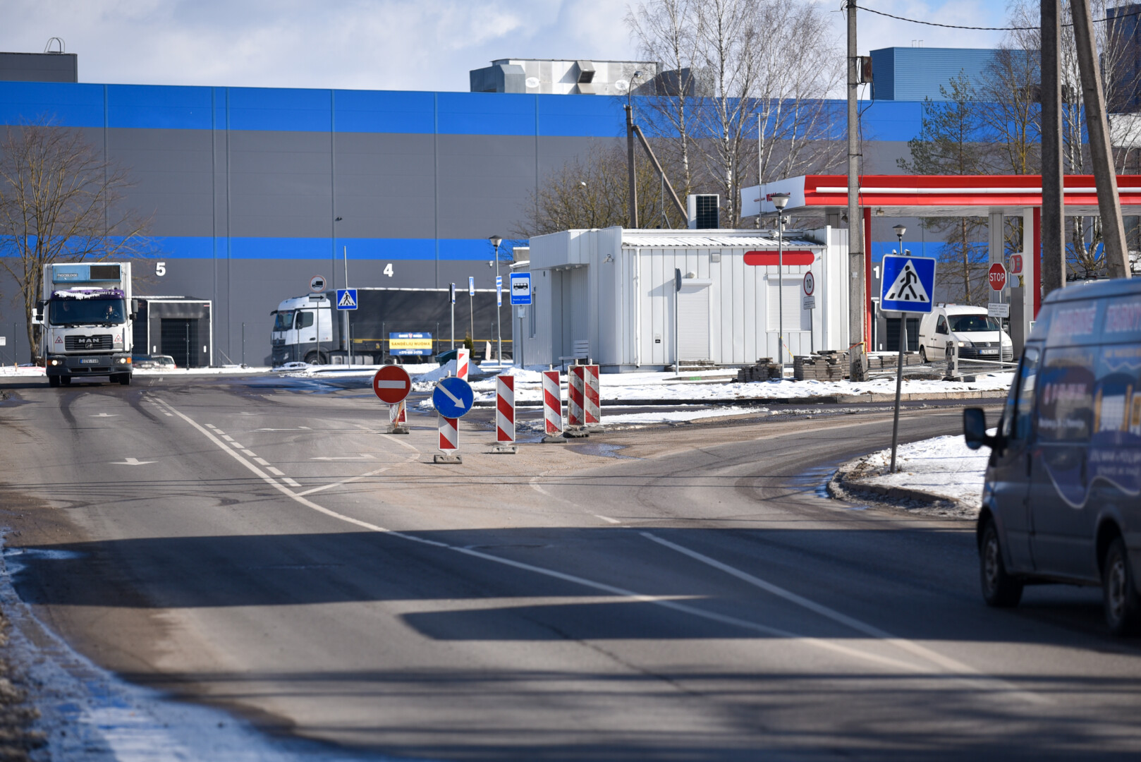 Greta buvusios „Ekrano“ gamyklos įrengta laikina žiedinė sankryža, apjuosusi degalinę, tapo tikrais spąstais retai ja važiuojantiems vairuotojams.
