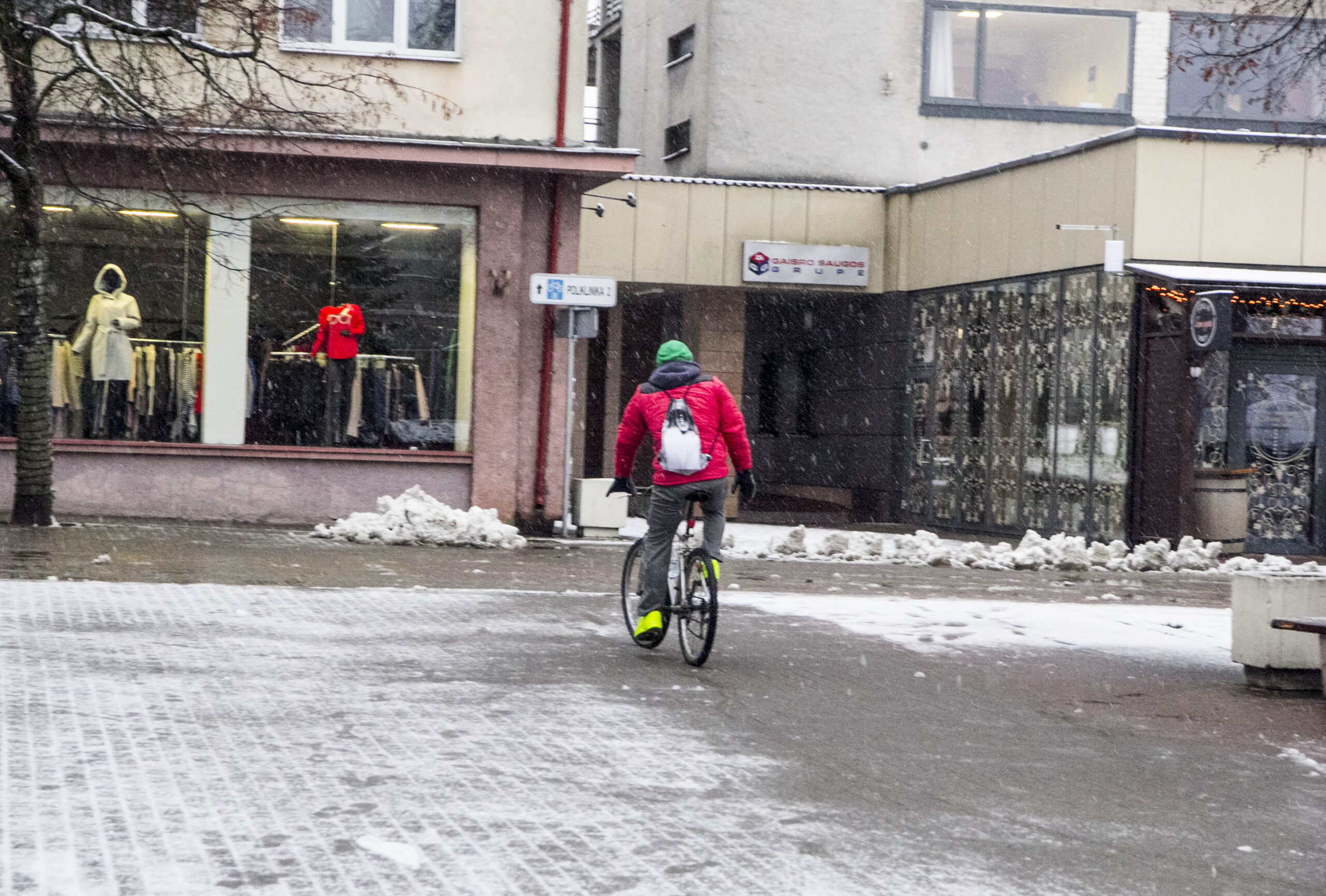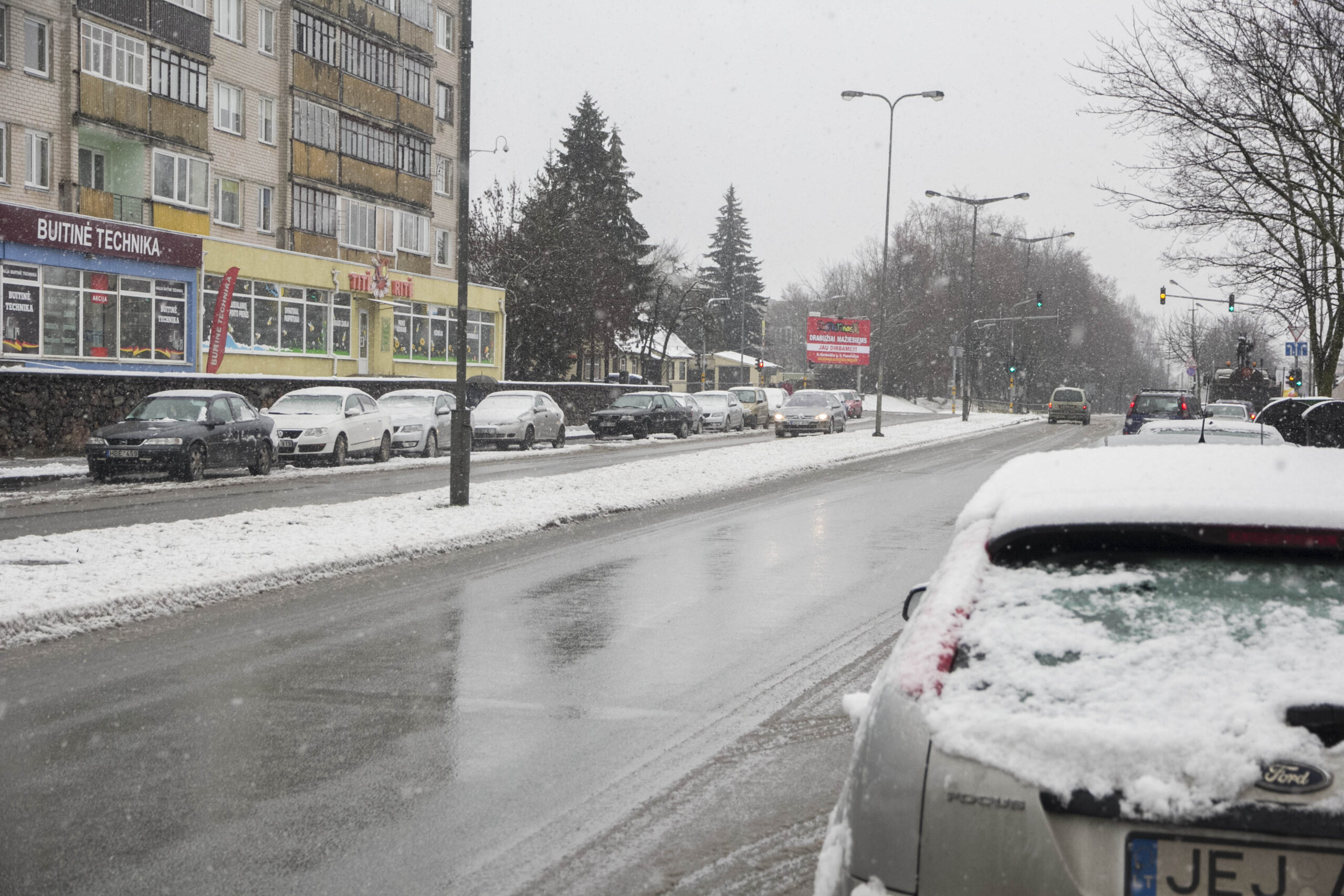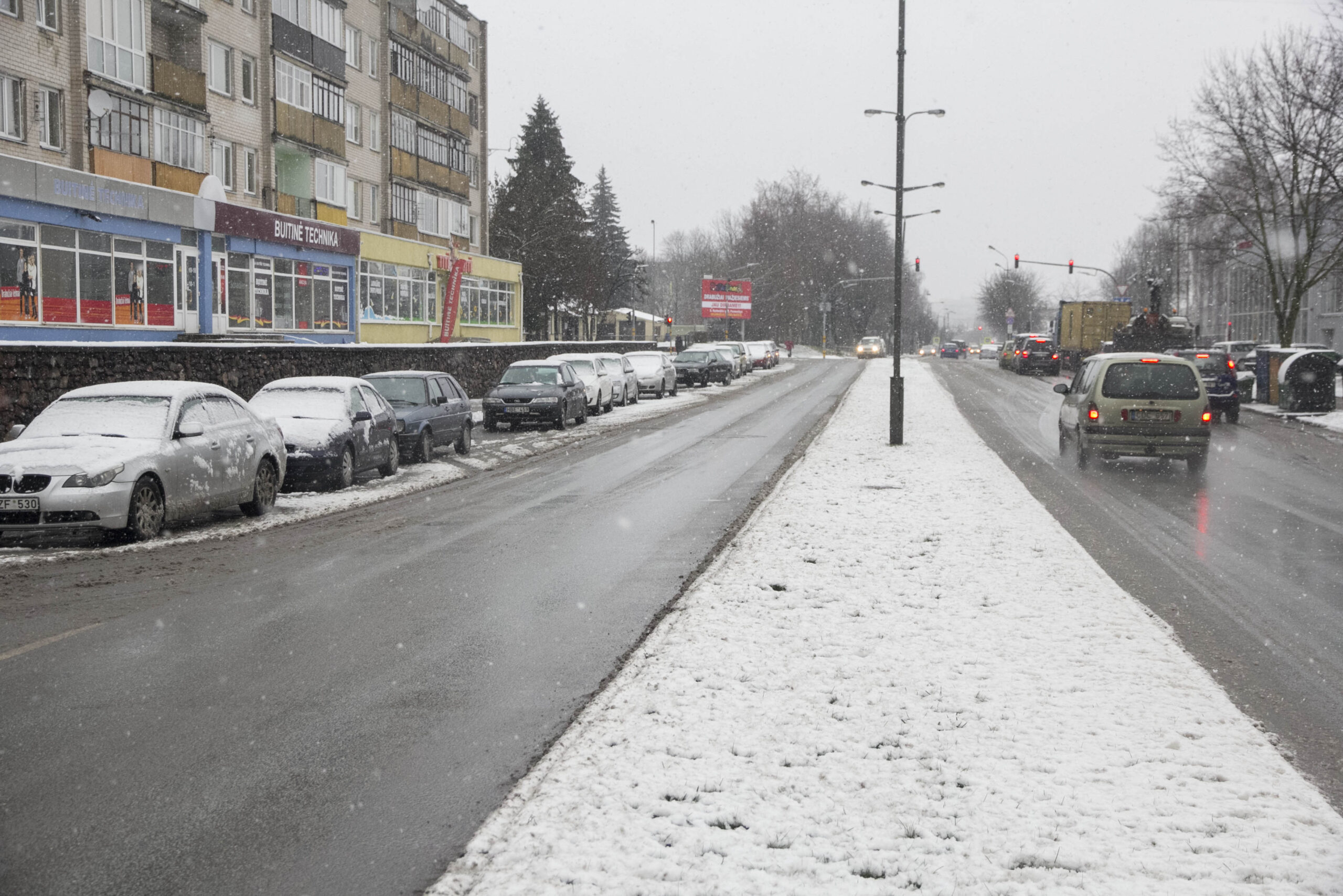 Tačiau snigti nesiliovė ir įmonės barstytuvams teko visą dieną miestą saugoti nuo pavojingų eismo sąlygų. Kartu triūsė ir šaligatvius valanti technika.