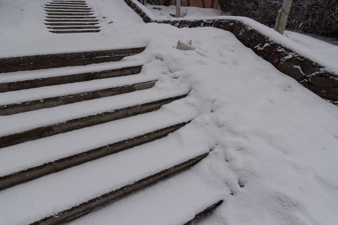 Anot jos, šią žiemą neįgaliesiems ypač sunku – aplink buvusią „Nevėžio“ mokyklą nei valyta, nei pabarstyta.